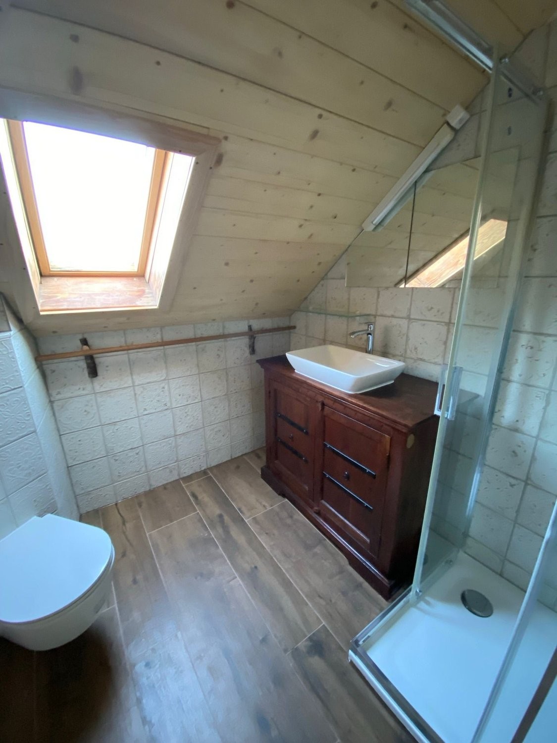 Zwei Badezimmer: Eines davon als charmantes Dachbodenbad mit Oberlicht
