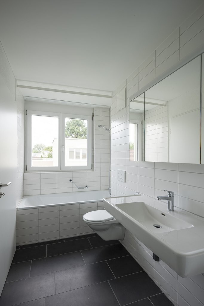 - Badezimmer mit WC, Lavabo, Spiegelschrank und Dusche
