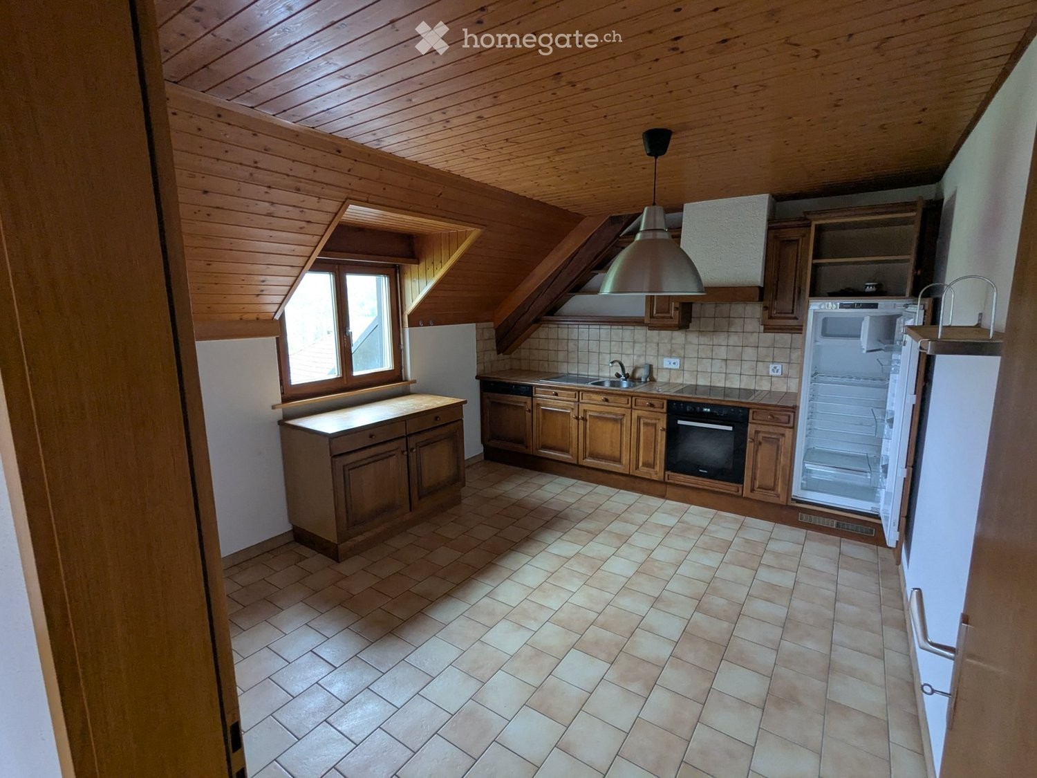 Appartement de 5.5 pièces en attique, au deuxième étage - 1 salon - 3 chambres (2 à l'étage + 1 combles) - 1 cuisine aménagée - 1 salle de bain - 1 WC séparé (combles) - 1 cave - 1 réduit - salle de lessive