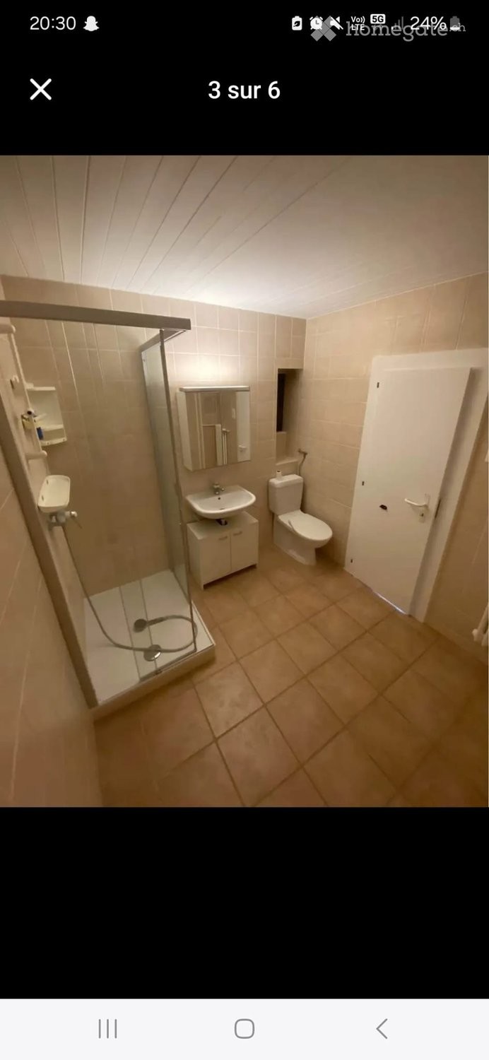 Très joli appartement refait à neuf avec pierres et poutres apparentes. Situé au premier étage d'une grande maison, ce bien propose 3 pièces plus un hall d'entrée, une cuisine agencée et habitable, ainsi qu'une grande salle de bain avec douche.