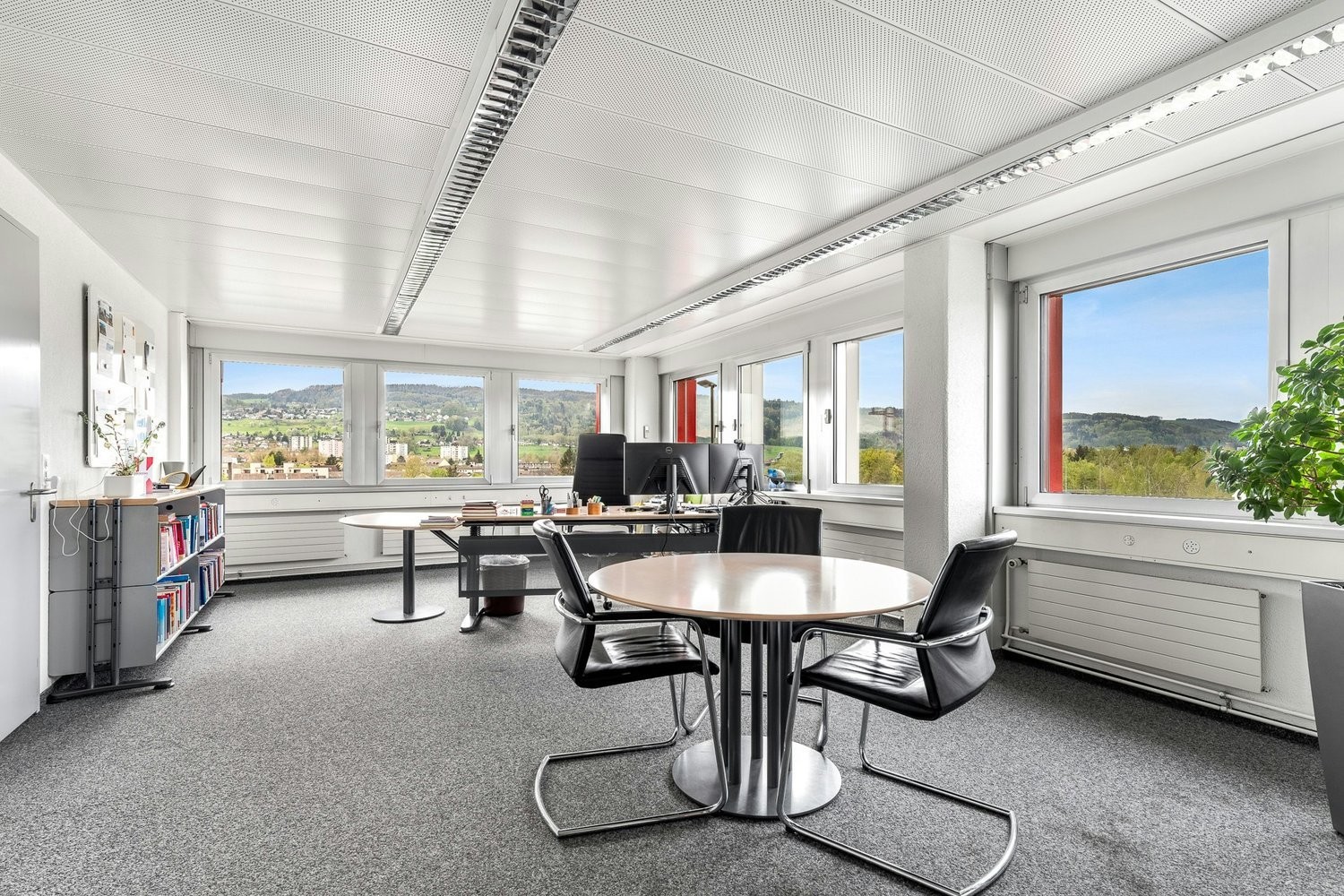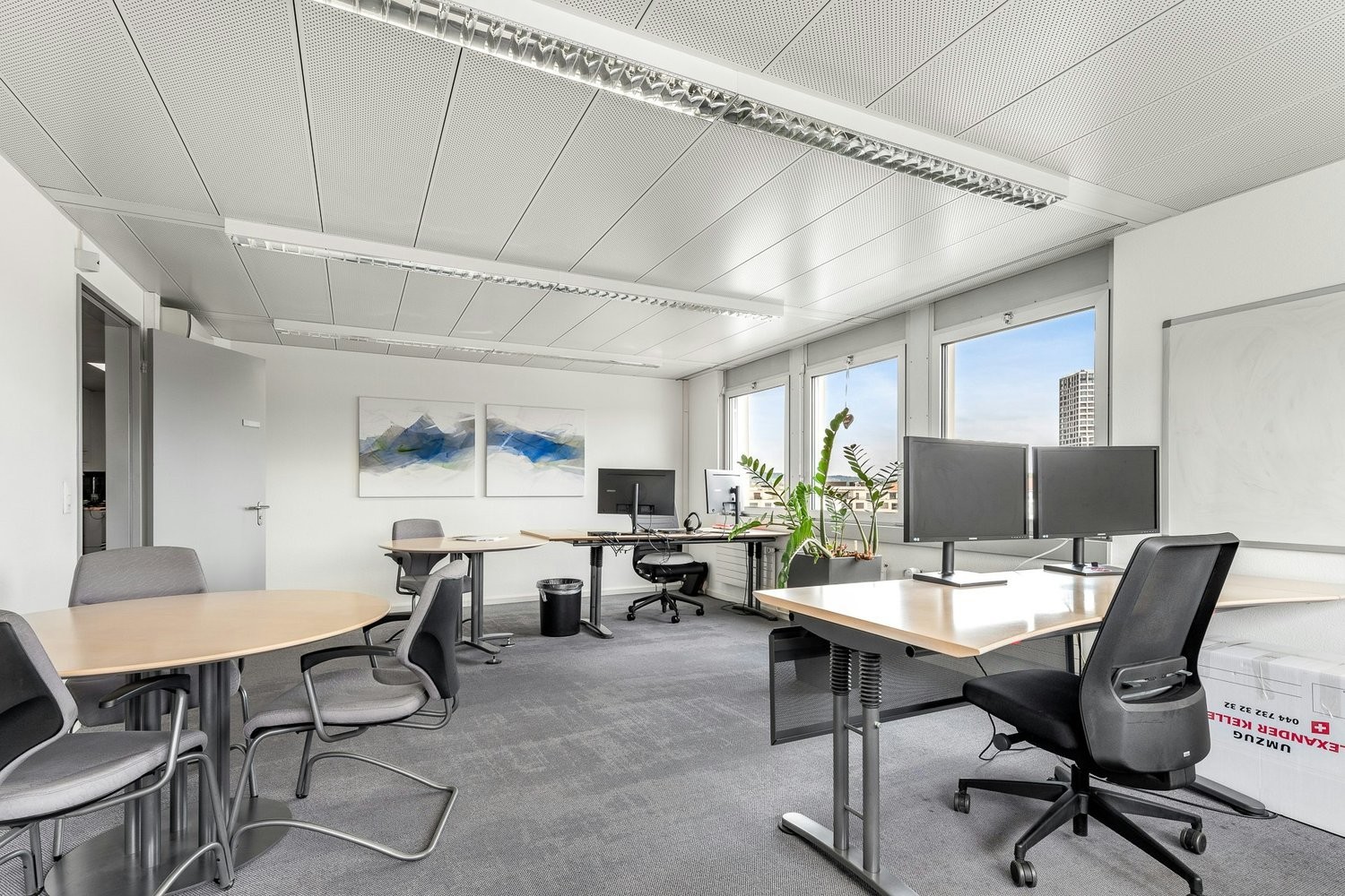 Nahe am Bahnhof Dietikon vermieten wir nach Vereinbarung eine fertig ausgebaute Bürofläche mit ca. 249 m² im 5. Obergeschoss mit Weitsicht.