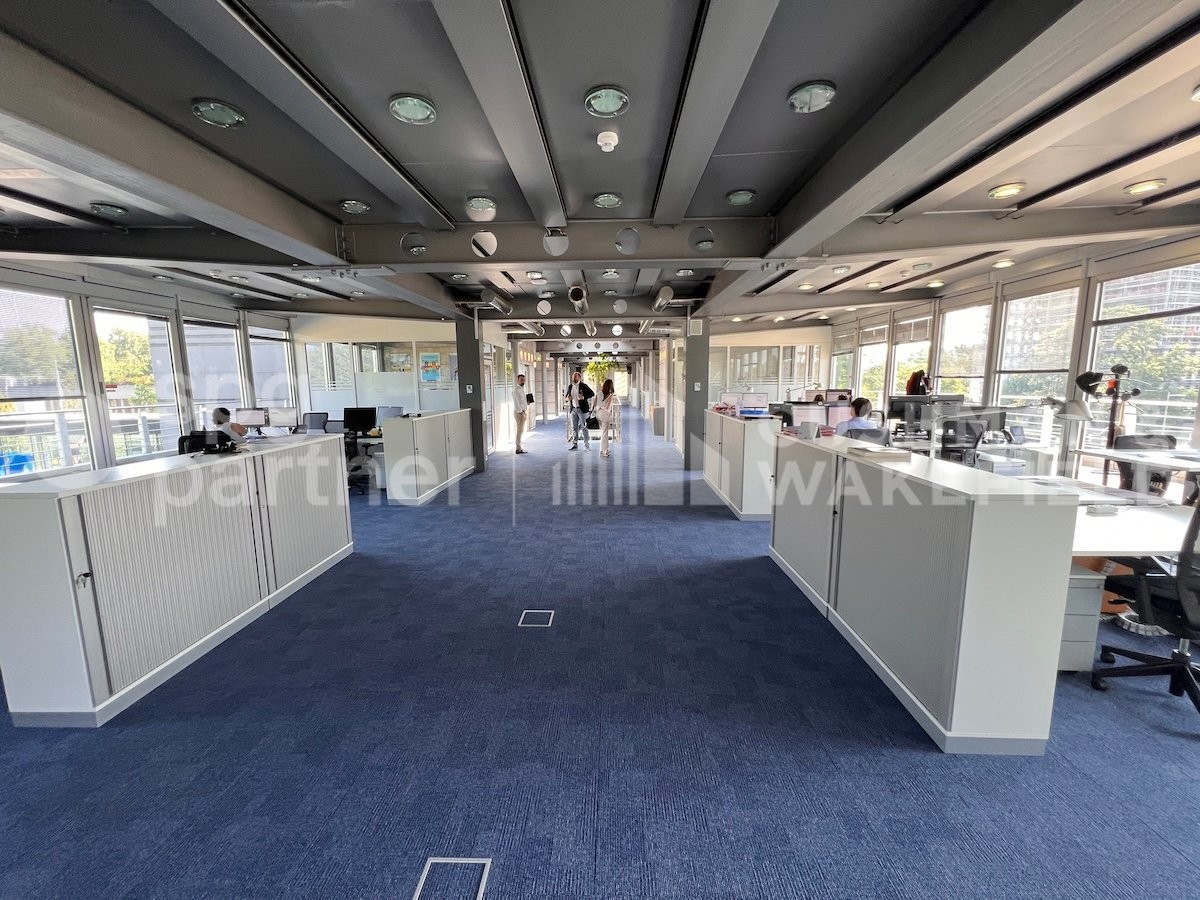 Cet immeuble entièrement vitré offre un cadre de travail privilégié, disposant de nombreuses terrasses extérieures et d’une belle vue dégagée.