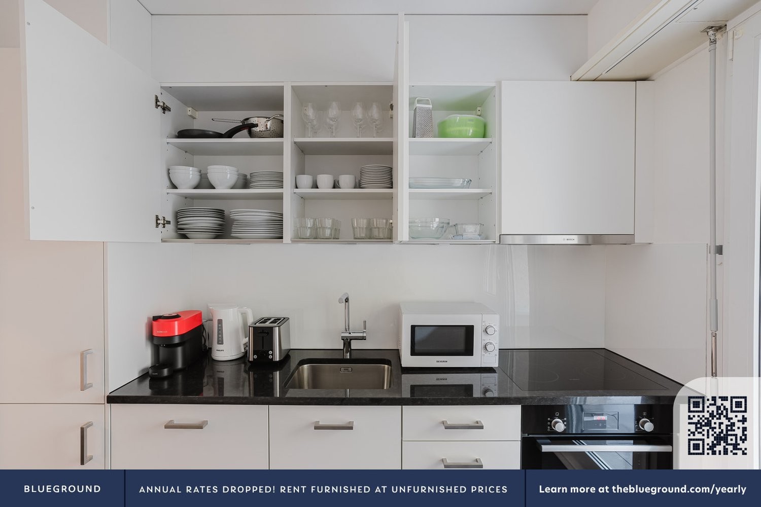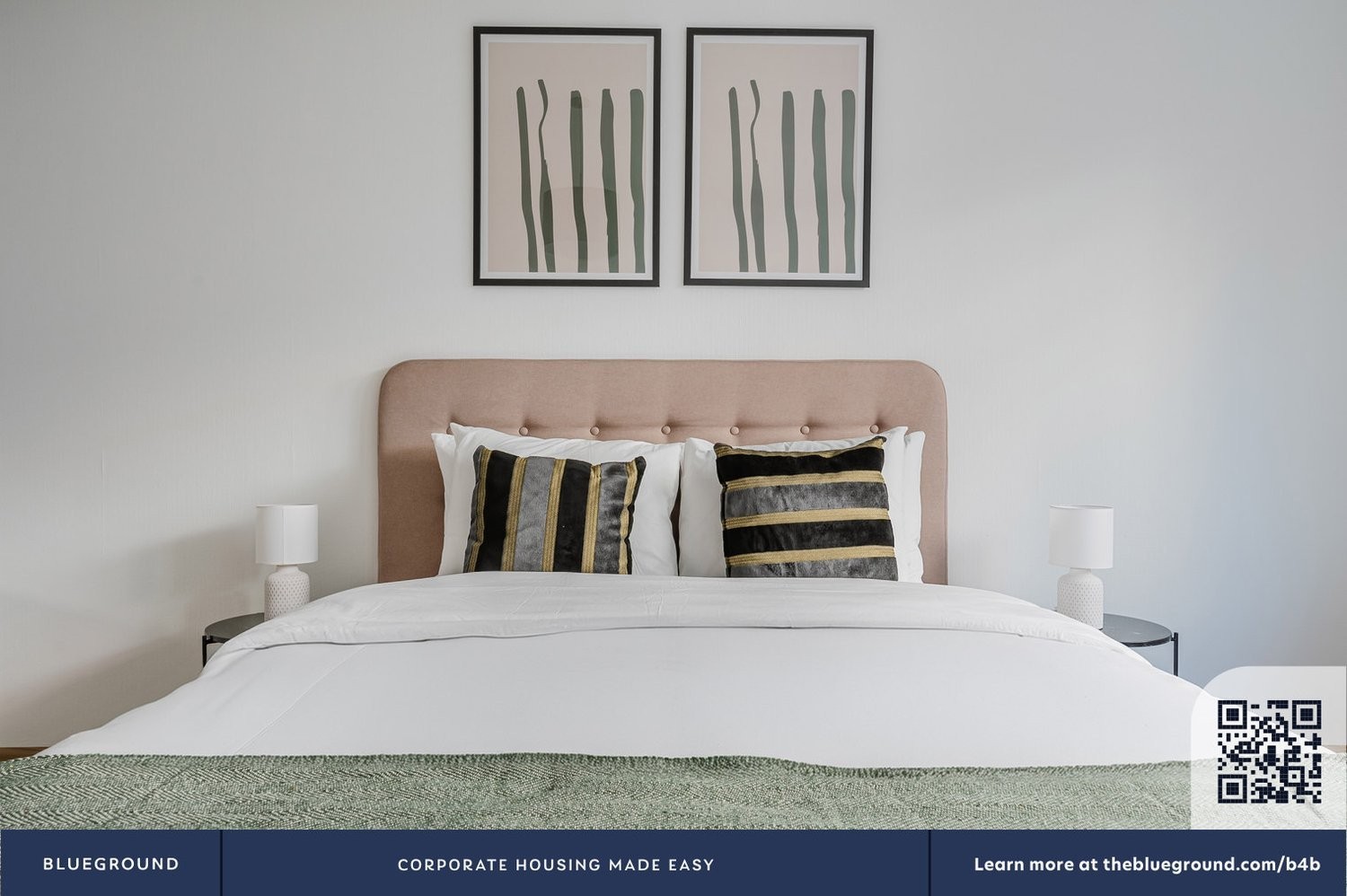 Dieses Blueground Wohnung bietet flexible Mietoptionen, sodass Sie es für drei Monate, ein Jahr oder länger buchen können.Wir sind sehr stolz darauf, dass alle gezeigten Fotos in unseren eigenen Einheiten mit unserer tatsächlichen Einrichtung aufgenommen wurden. Das heißt, wir aktualisieren regelmäßig unsere Dekoration und Möbelanordnung, die von dem abweichen kann, was abgebildet ist.