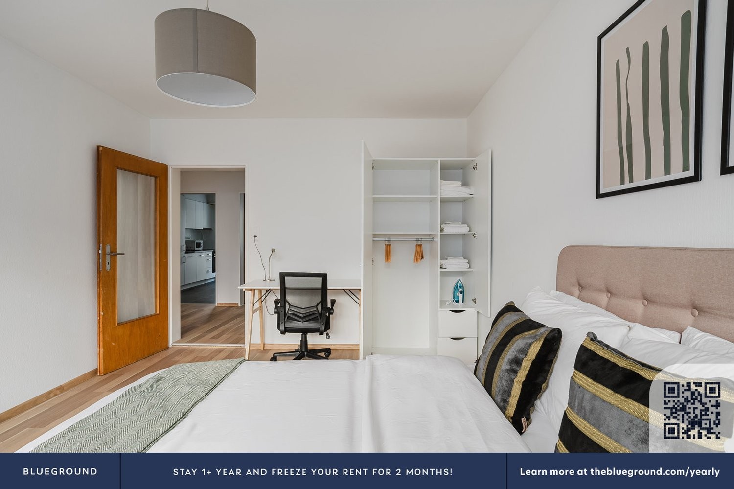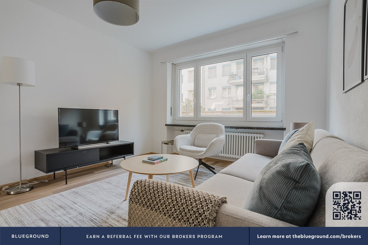 Kommen Sie an und beginnen Sie ab dem ersten Tag zu leben in Basel mit diesem geräumig Zwei-Schlafzimmer Blueground-Wohnung . Sie werden es lieben, nach Hause zu kommen in dieses liebevoll eingerichtete, schön gestaltete und voll ausgestattete Haus Sankt Johann . (ID #BSL84)