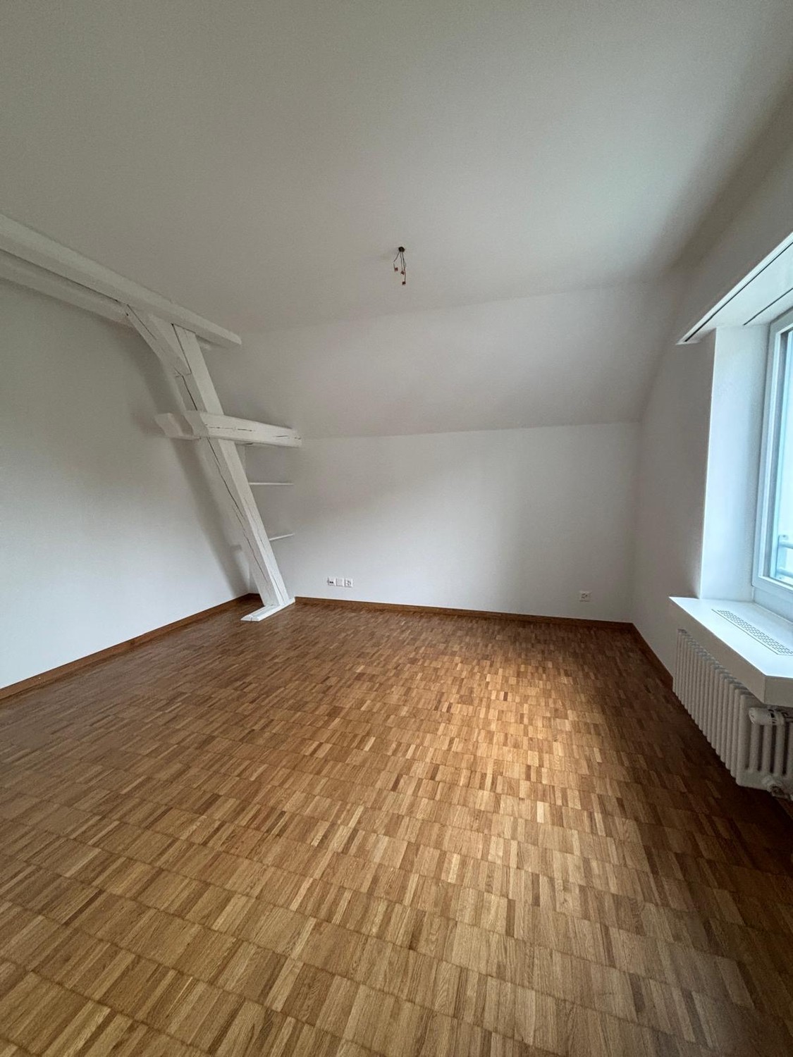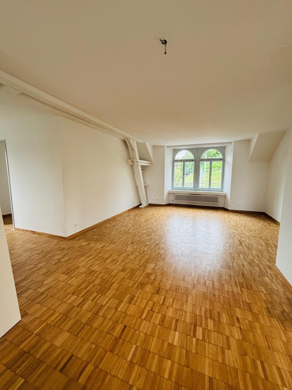 frisch geschliffener und versiegelter Parkett im Wohn- und Schlafzimmer
