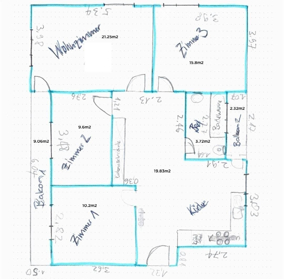 Möblierte oder unmöblierte Vermietung der Zimmer nach Absprache