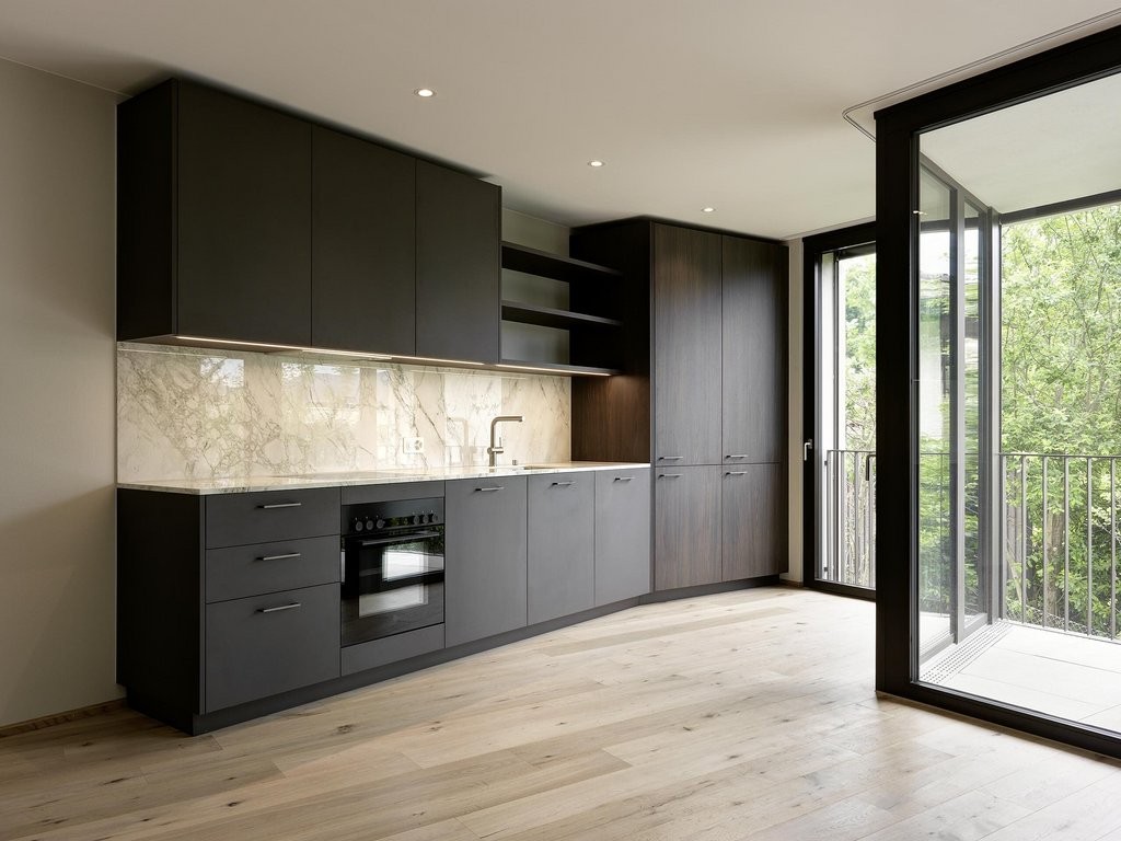 Die Küche ist modern ausgestattet und in den Wohnbereich integriert, was ein offenes Raumgefühl und kurze Wege im Alltag ermöglicht.