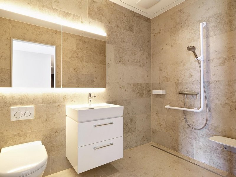 Die Wohnung verfügt über ein Badezimmer mit Dusche sowie ein separates WC. Ein Notrufsystem ist installiert: der Grundservice mit 24-Stunden-Notfalldienst ist Bestandteil des Betreuungskonzepts. Weitere Dienstleistungen des Hauses DREILINDEN können bei Bedarf separat bezogen werden.