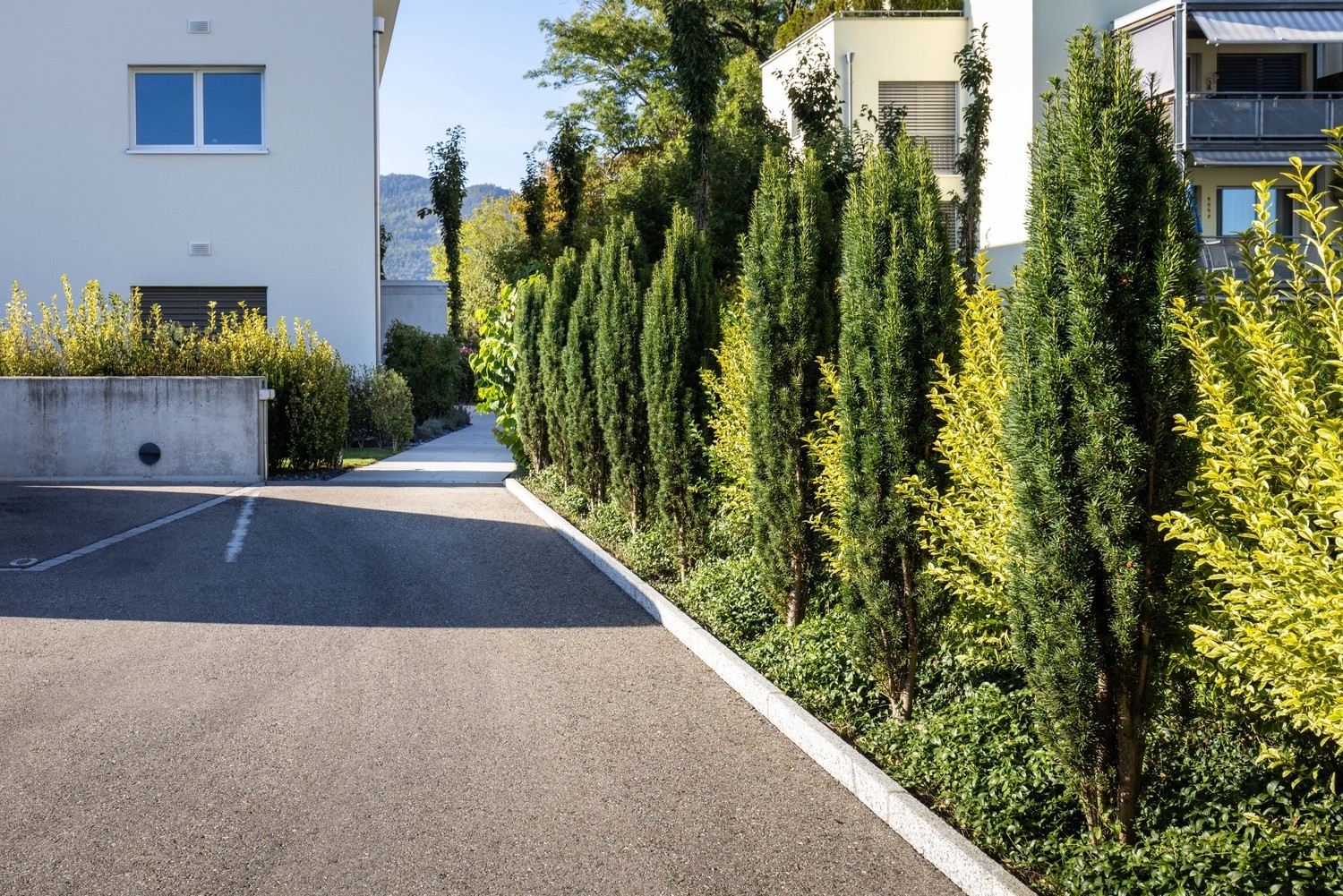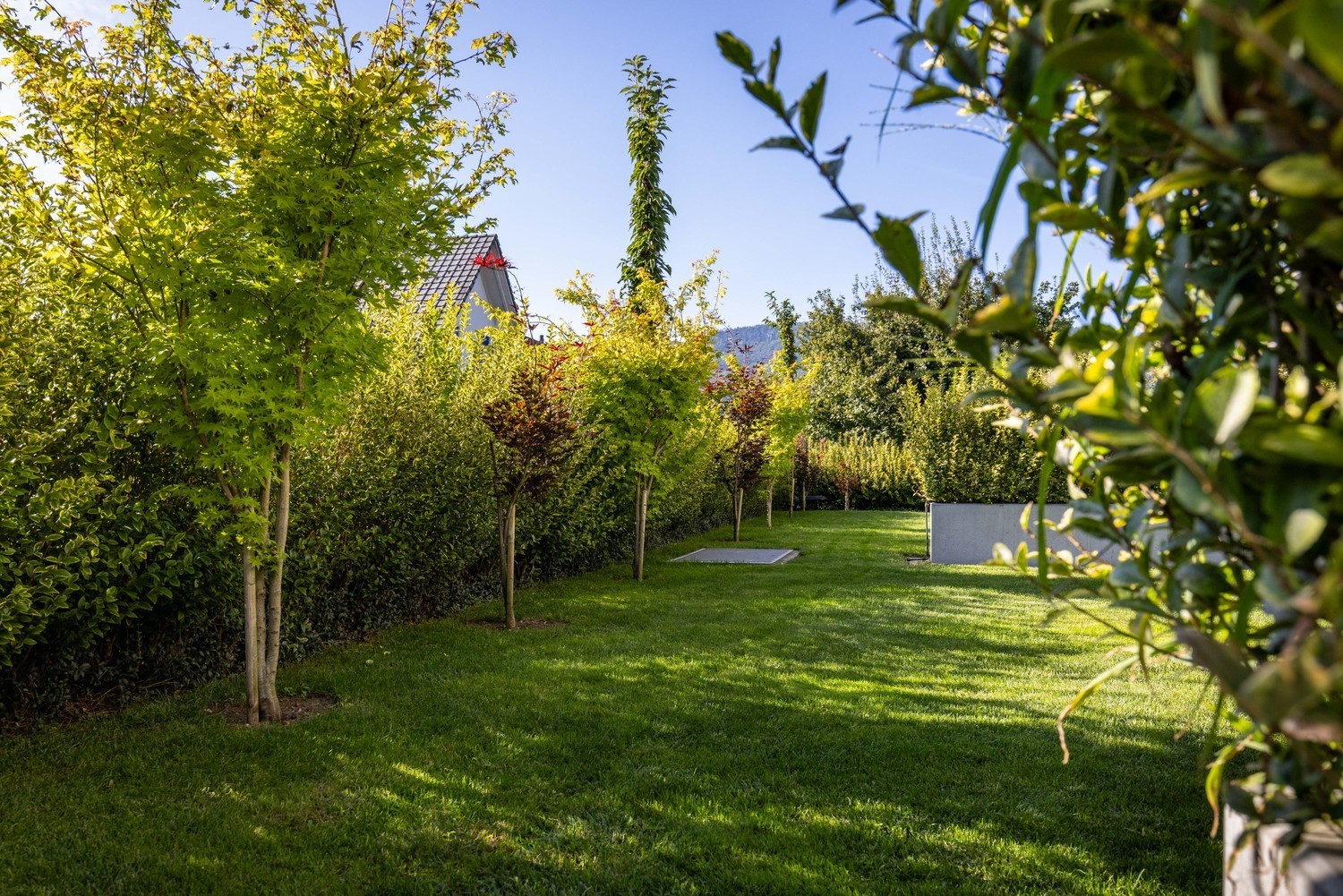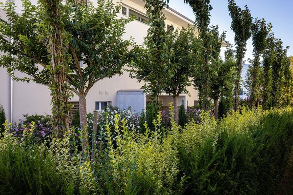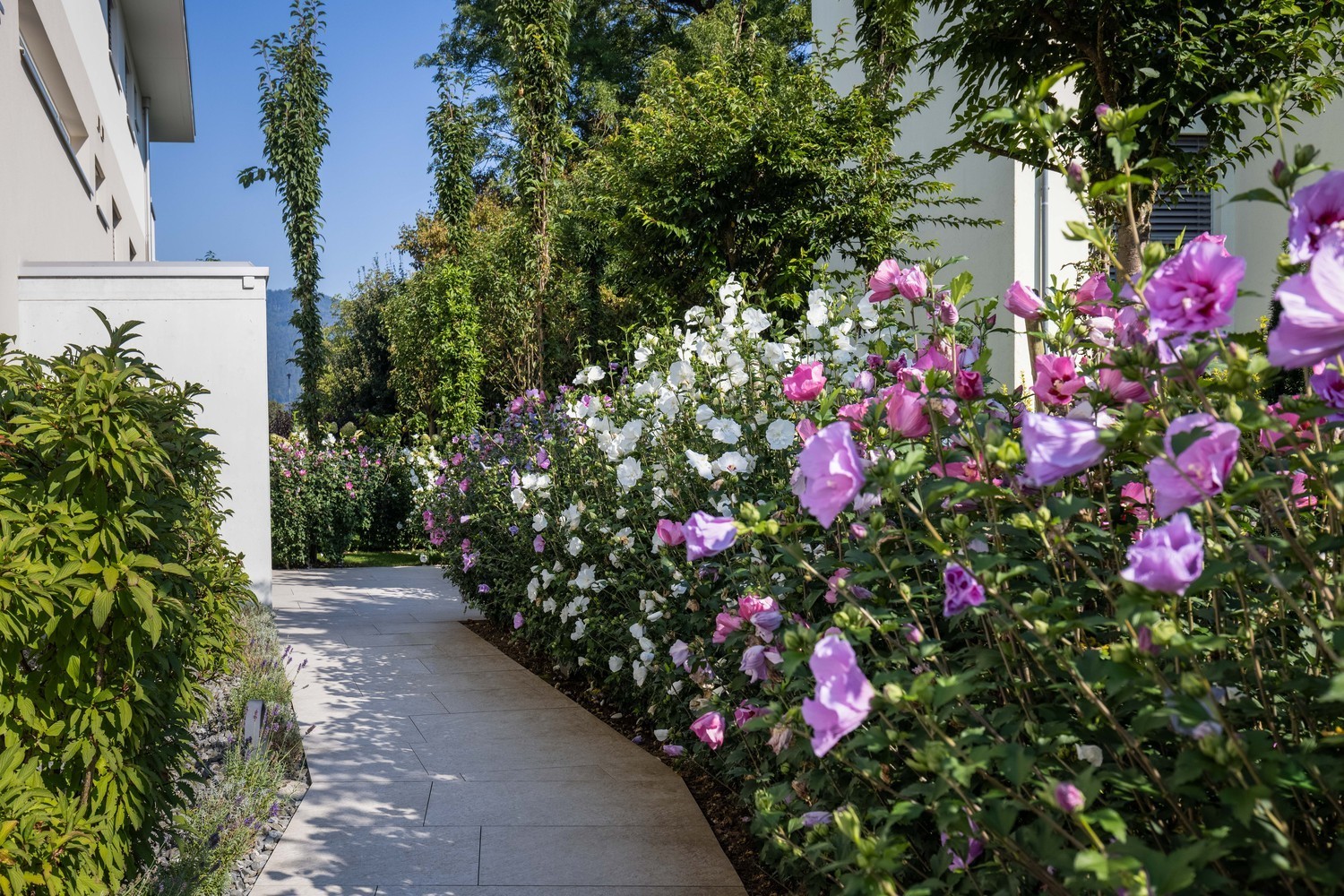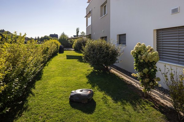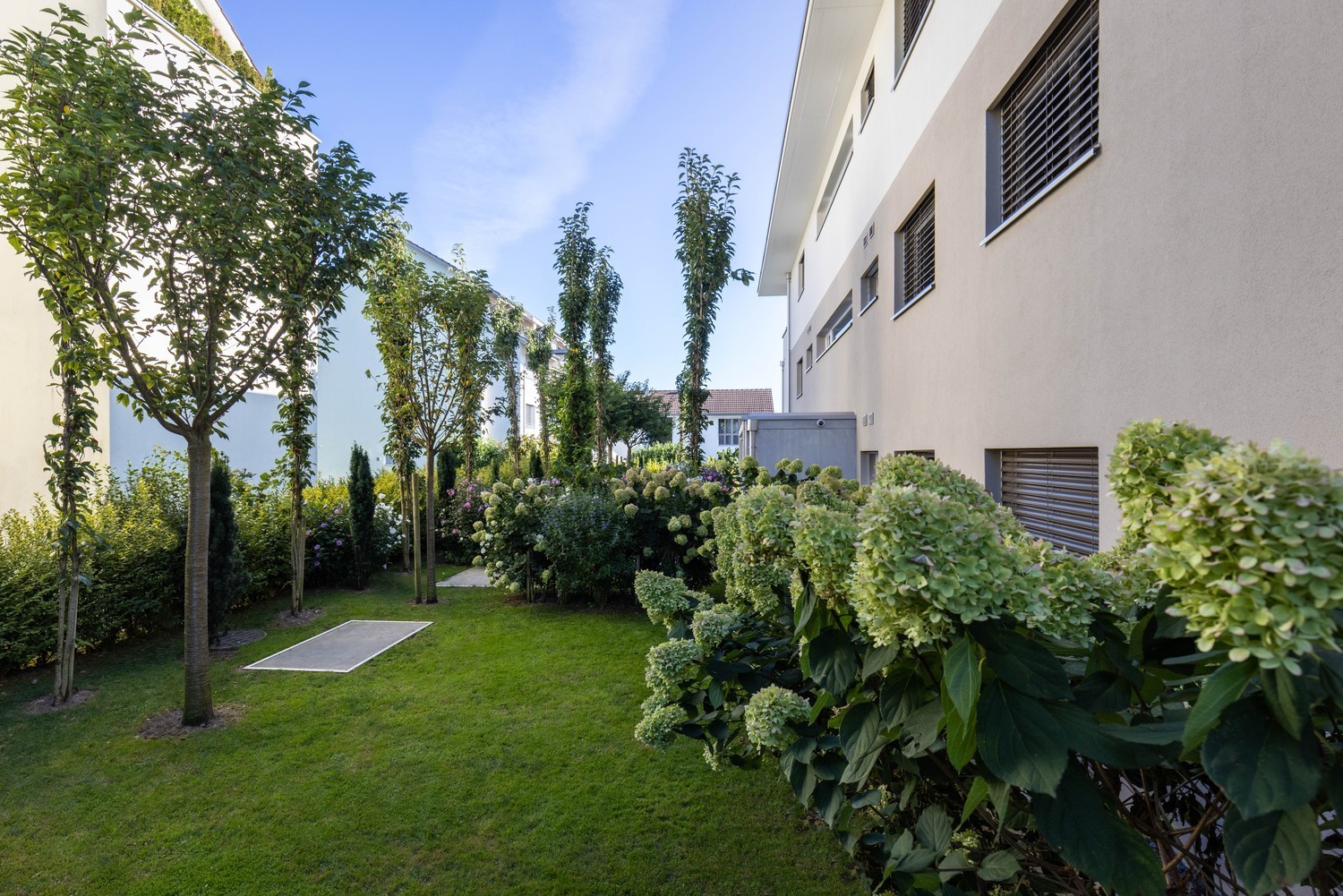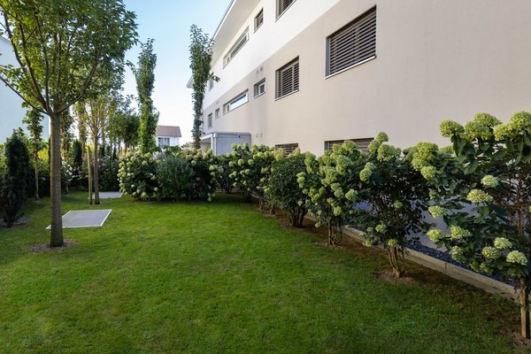 • 100.00 m² Gemeinschaftsgarten mit rundum Sichtschutz mittels Eibe-, Liguster- und 5 farbigem Hibiscuslebhag für maximale Privatsphäre sowie diverse SolitärbäumeFächerahorene als Solitärbäume • 148.11 m² Gesamtnutzfläche Wohnung, Wintergarten, Aussenreduit, Keller und Gemeinschaftsgarten • Ruhige Lage nach Westen ausgerichtet sowie langanhaltende Abendsonne zu jeder Jahreszeit