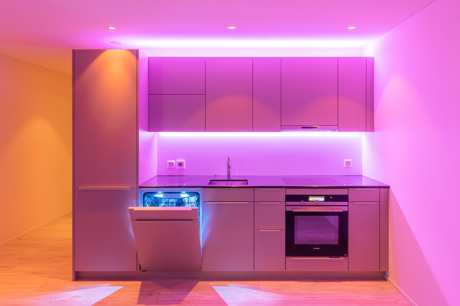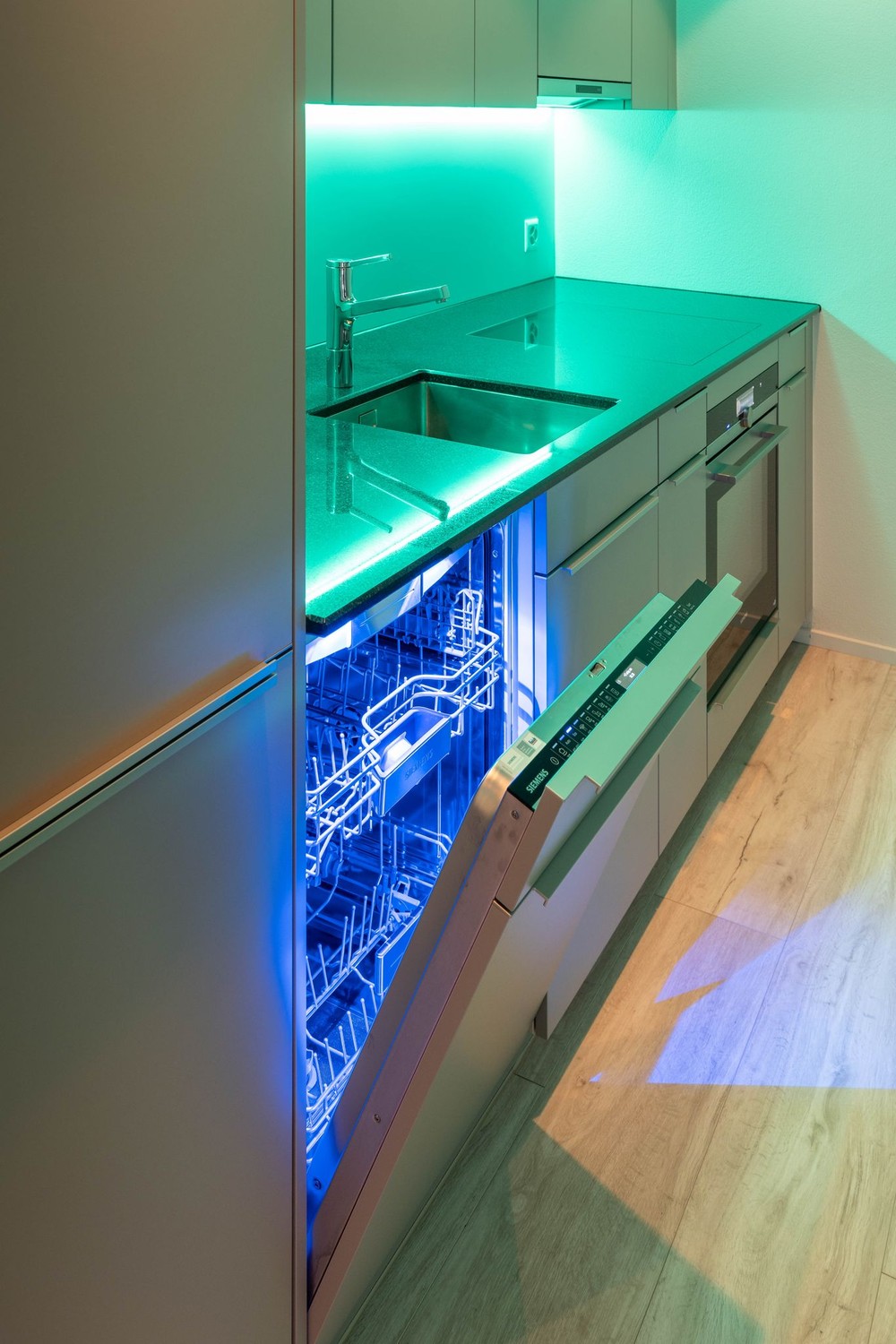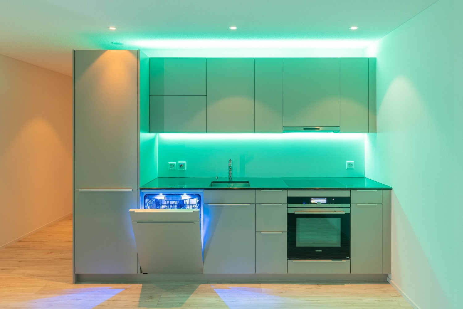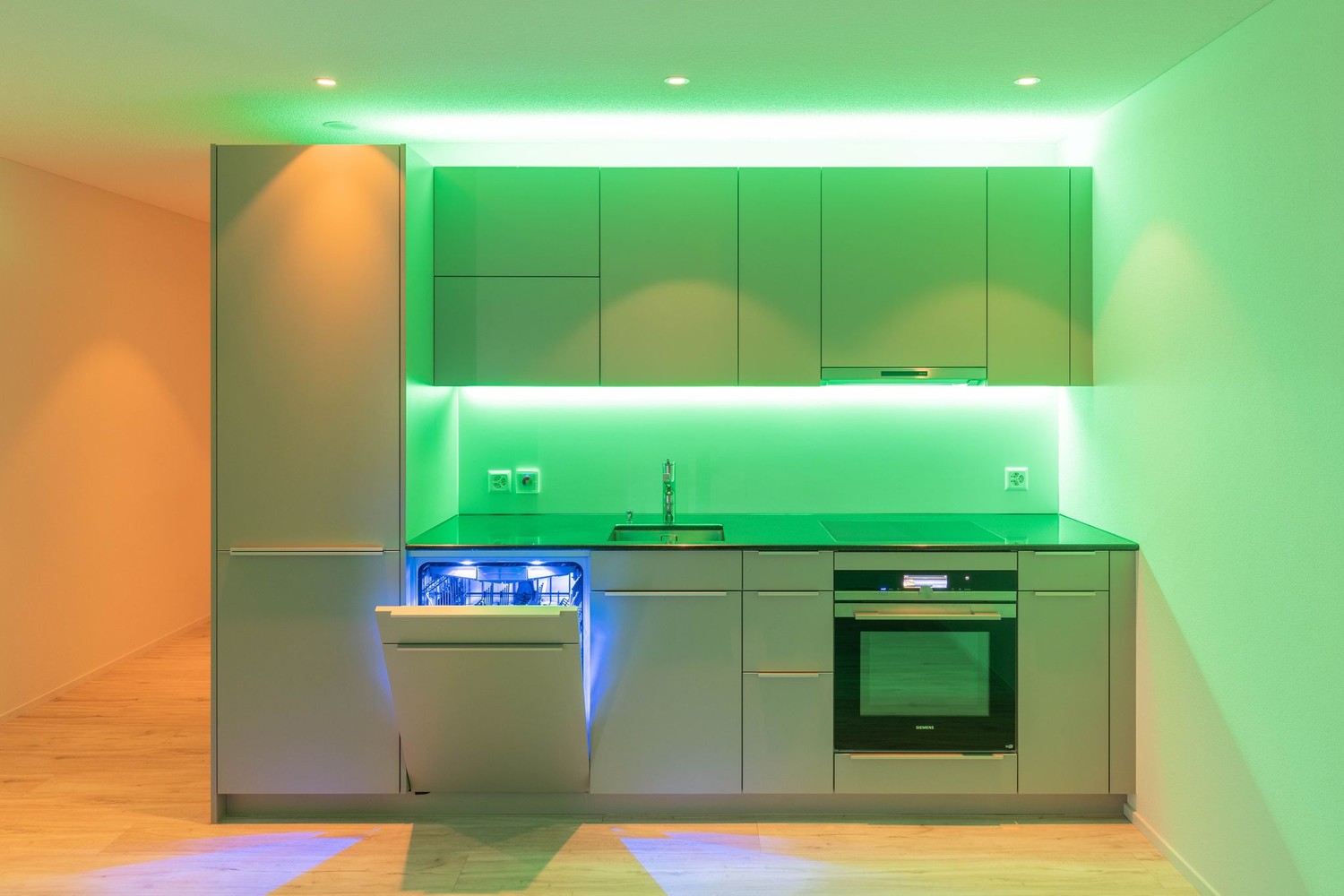 • Dimmbares RGBW (farbig) LED-Lichtkonzept in der Küche