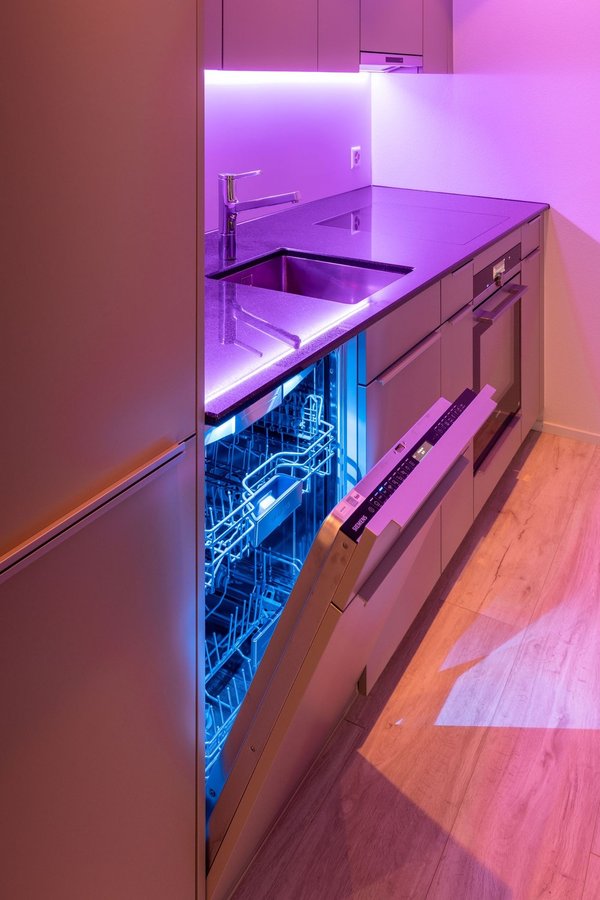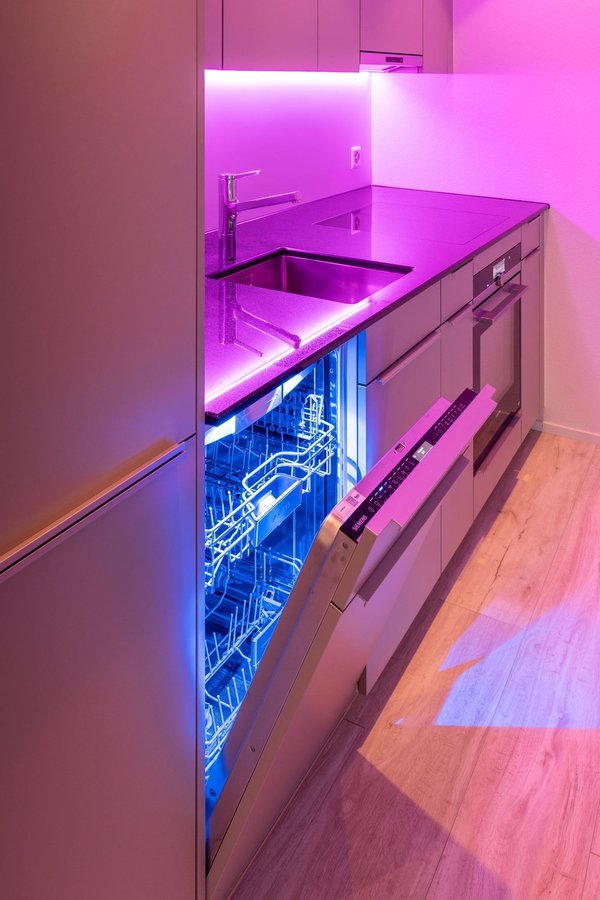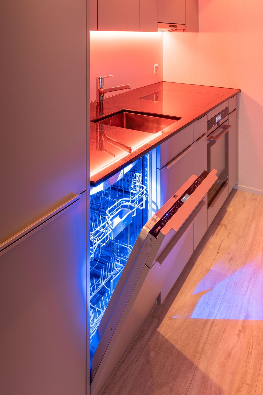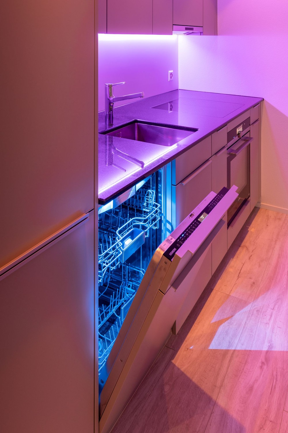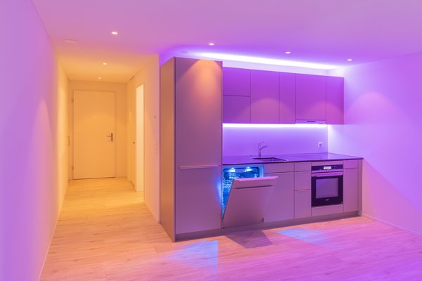 • Dimmbares RGBW (farbig) LED-Lichtkonzept in der Küche