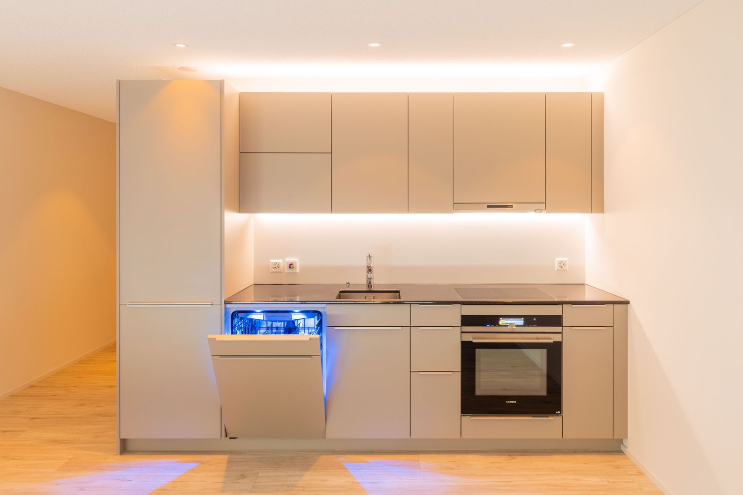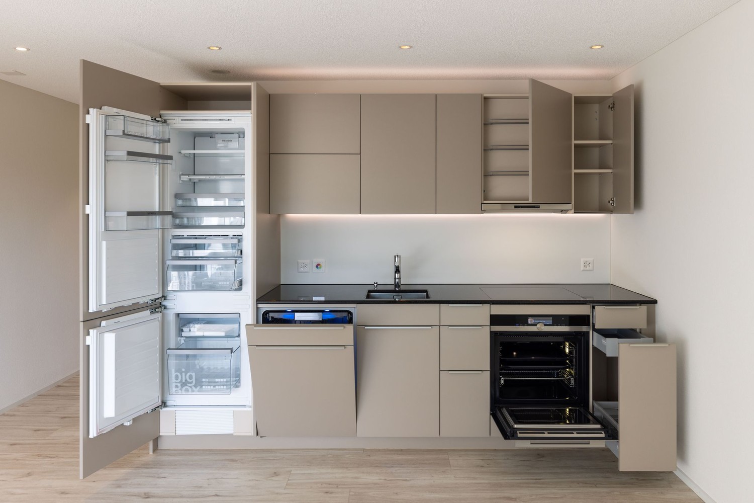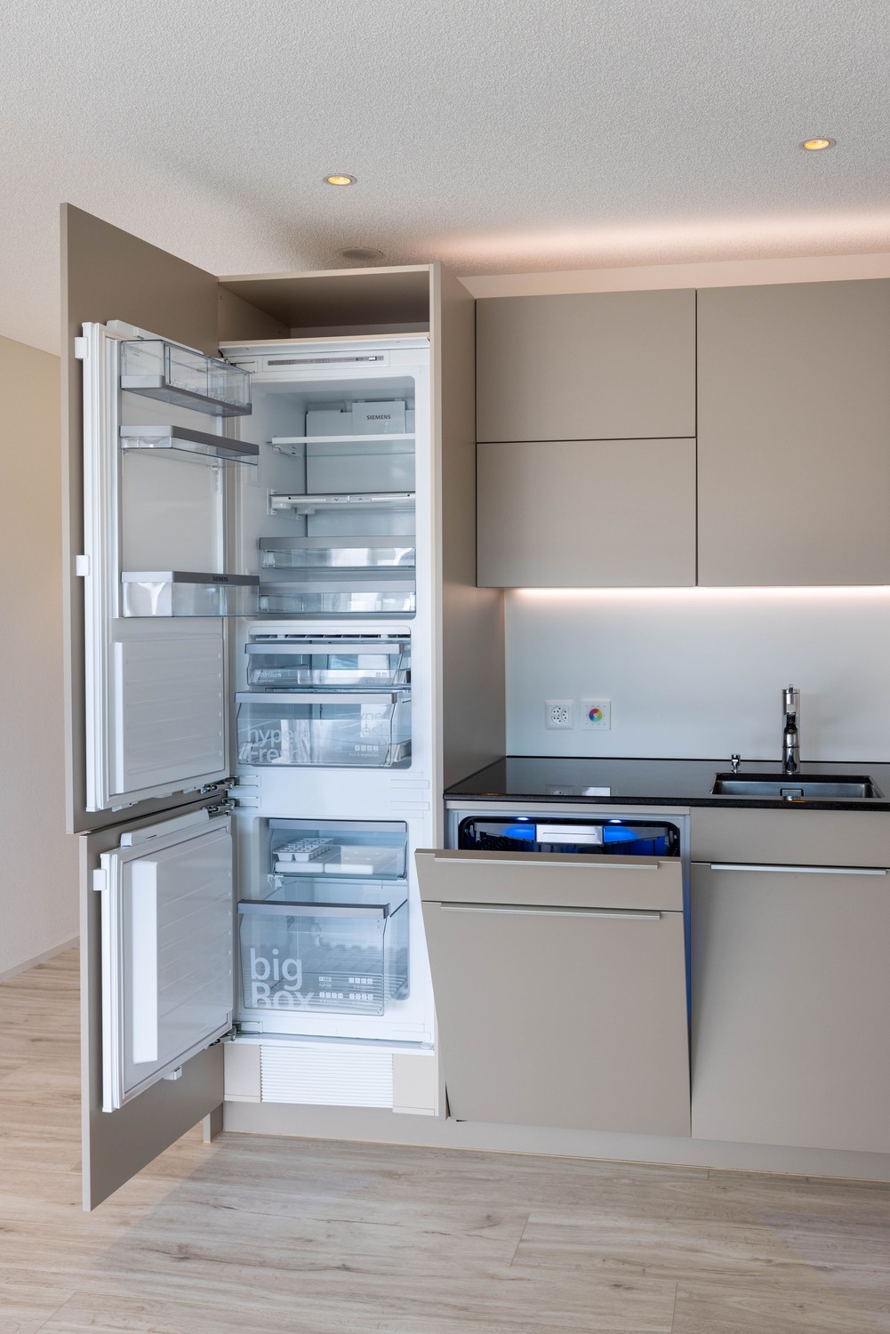 • Beachtliche Küche mit genügend Stauraum als auch Arbeitsfläche und sämtlichen hochwertigen Einbaugeräte analog der übrigen Wohnungen