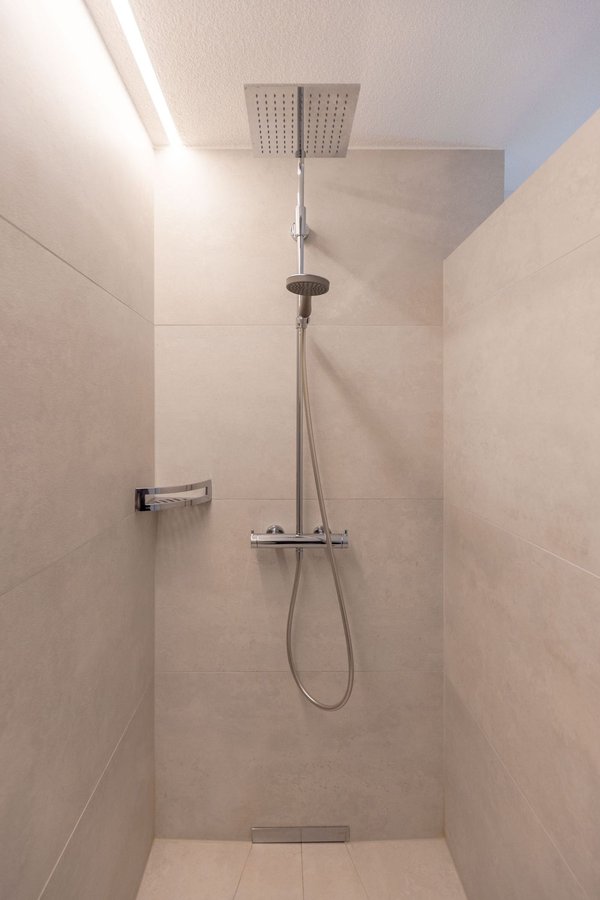 • Grosse Regendusche inkl. Handbrause, dimmbares unterputz LED-Deckenlichtband