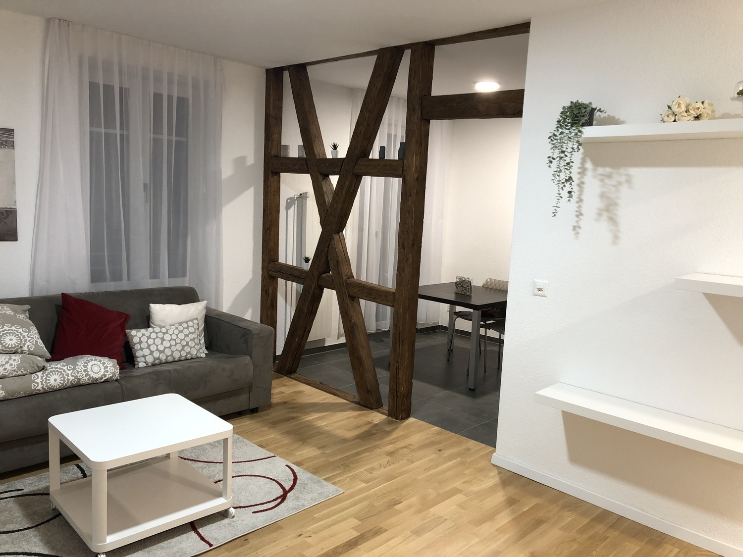 - Wohn- und Schlafbereich sind mit Parkett
