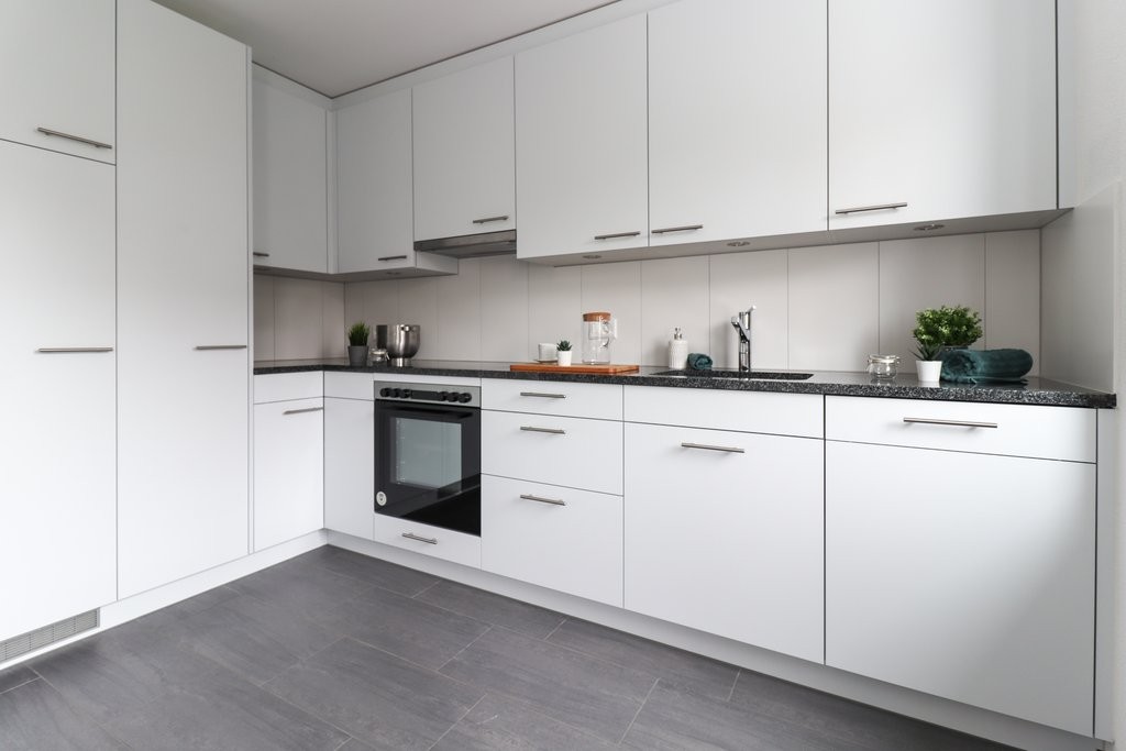 - Entrée, Küche und Nasszellen mit pflegeleichten Bodenplatten