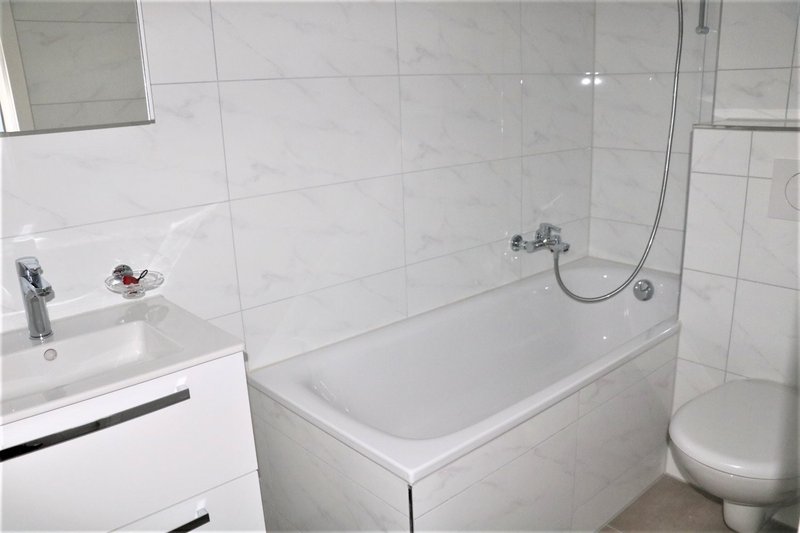 pflegeleichte Plattenböden im Korridor, im Bad und in der Küche