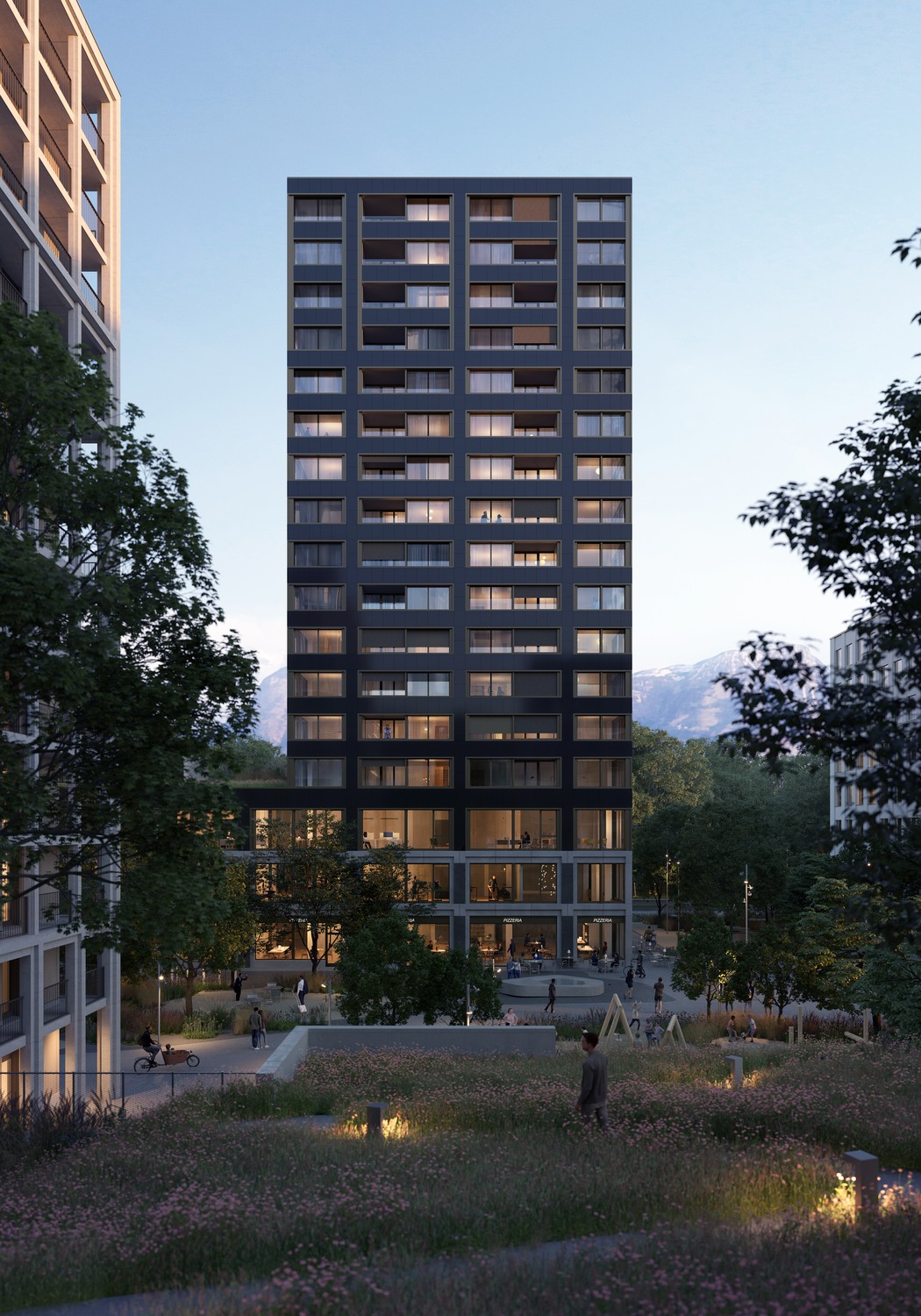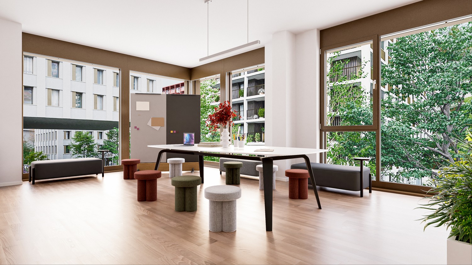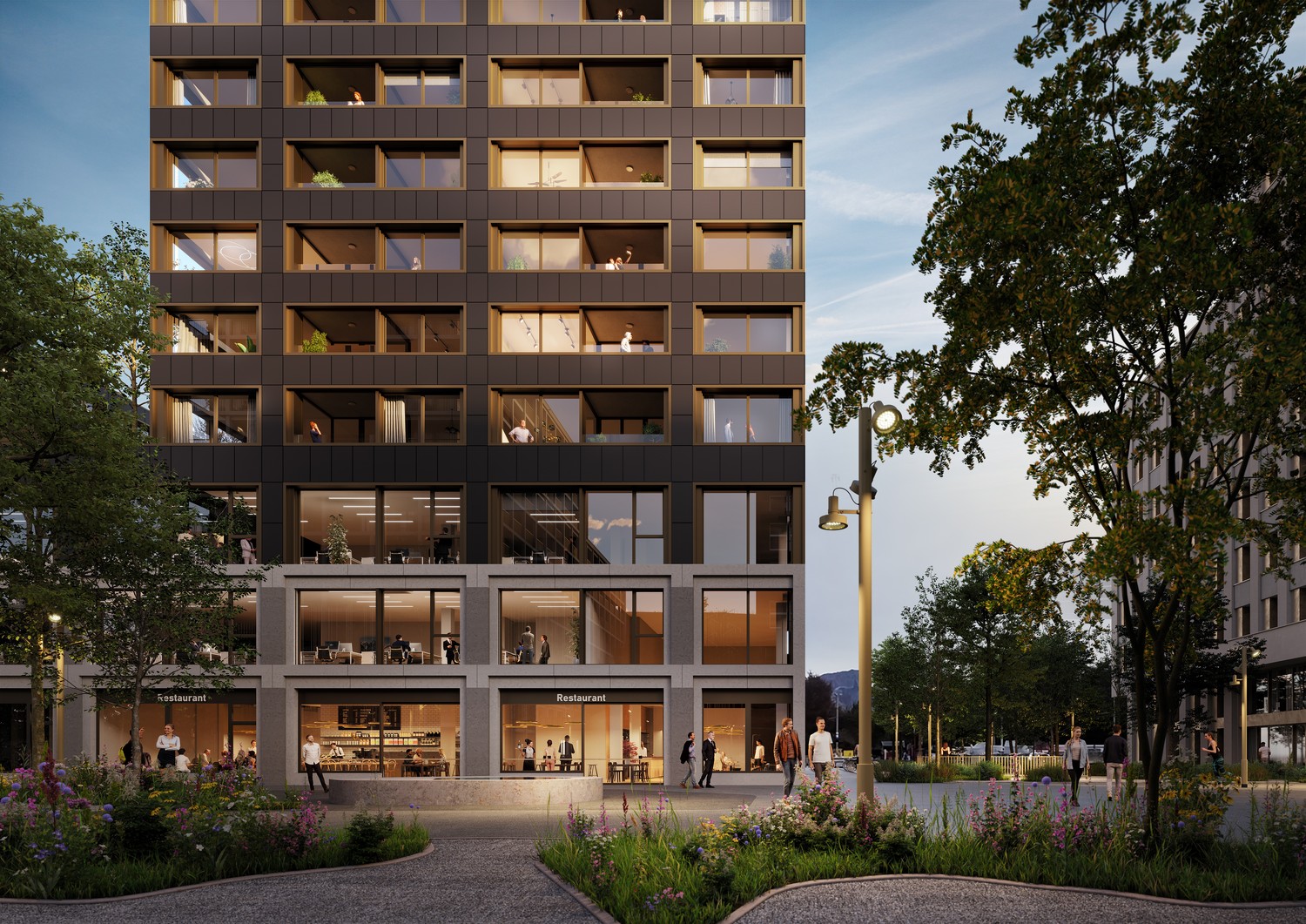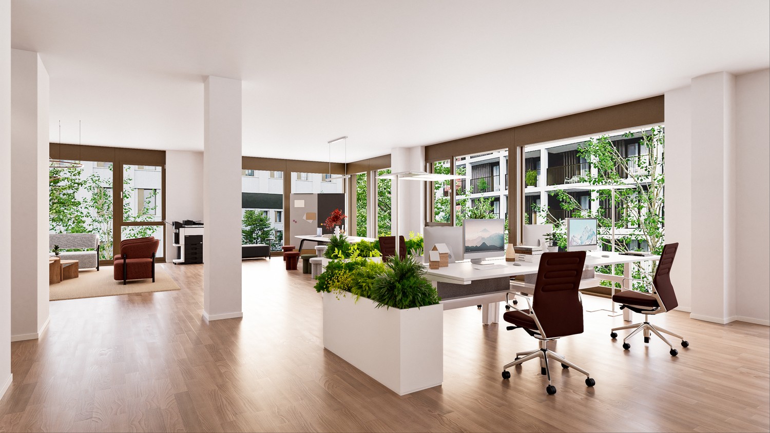 Auf dem Areal ist das bis zu 53 Meter hohe Haus «Weitblick» direkt an der Langsägestrasse das weithin sichtbare Wahrzeichen. Die angebotene Gewerbefläche (1'313m²) bildet das ganze 1. Obergeschoss. Auf den Park ausgerichtet geniessen Sie Ruhe und gegen die Langsägestrasse höchste Visibilität.