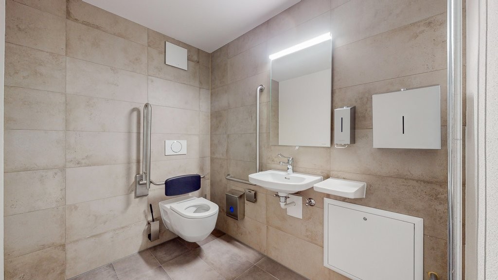 Das Gebäude ist rollstuhlgerecht und die Flächen sind mit einem Personenlift erschlossen.