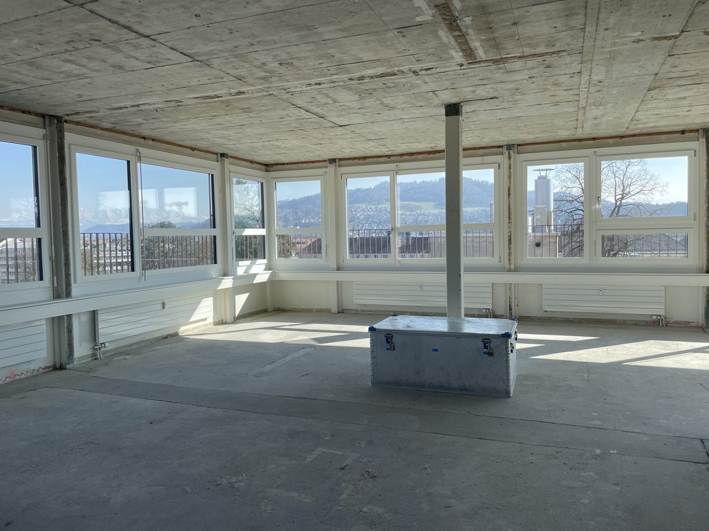 Eine grosszügige Terrasse mit ca. 90 m2 und Weitsicht zur Alleinnutzung zur Verfügung.