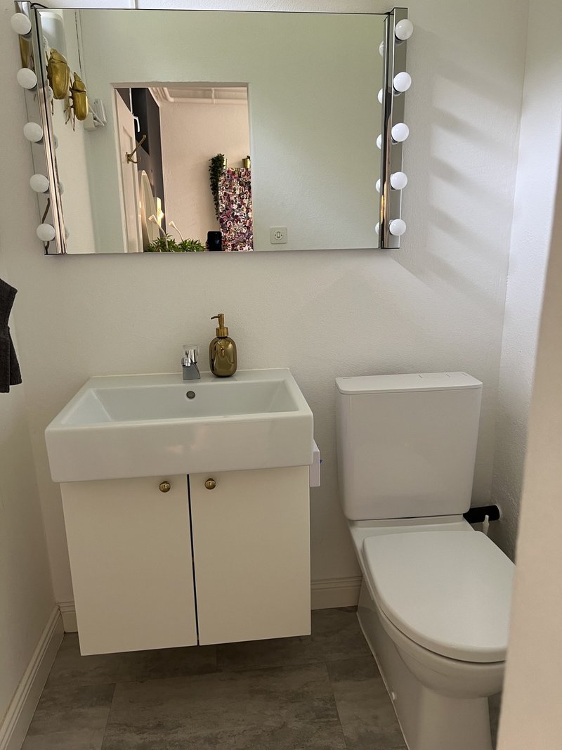 Die Wände und die Umbauten (Podest, Bodenbeläge, Küchenschränke etc) müssen so übernommen werden.