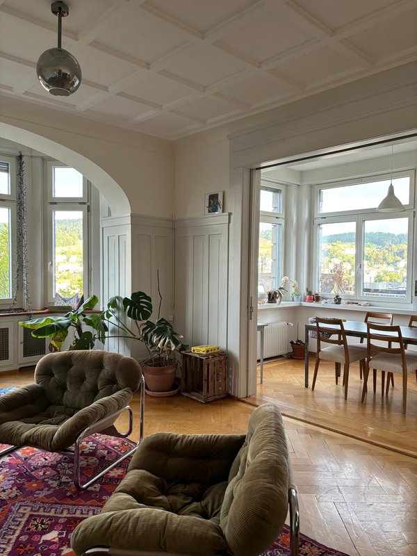 Wir, zwei Geschwister (m), ruhig, und unkompliziert vermieten ein gemütliches Zimmer in unserer schönen, grosszügigen Altbauwohnung. Die Wohnung liegt in einer ruhigen, aber zentralen Lage, in der Nähe der Hochschule St. Gallen. Sie bietet viel Platz für alle Mitbewohner:innen, grosse und helle Räume und grosszügige gemeinschaftliche Räume. Die gesamte Wohnung ist ca. 171m2 gross. Der frühstmögliche Bezugstermin wäre der 7. Januar.