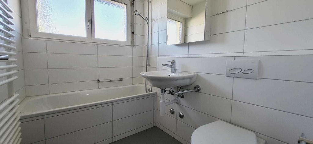 Dieses Mehrfamilienhaus befindet sich in einer ruhigen und kinderfreundlichen Umgebung. Die öffentliche Verkehrsmittel und diverse Einkaufsmöglichkeiten sind in wenigen Gehminuten erreichbar. Der Autobahnanschluss ist wenige Minuten entfernt. Im Erdgeschoss der Liegenschaft befinden sich die Kellerabteile und die gemeinschaftliche Waschküche mit Waschmaschine und Tumbler. Ein Lift ist nicht vorhanden.