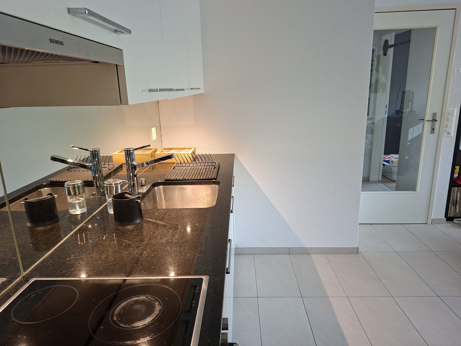 Küche mit Granit Abdeckung und Geschirrspüler Wohnzimmer und Schlafzimmer mit direktem Zugang zum Balkon