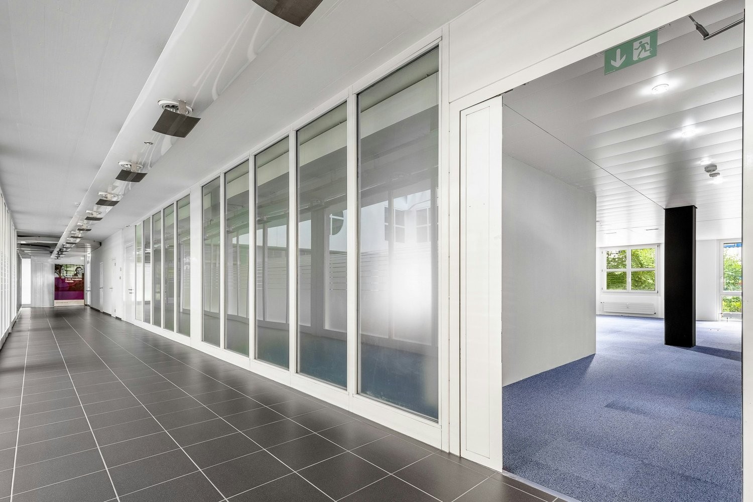 Fensterfront zum Korridor gerichtet