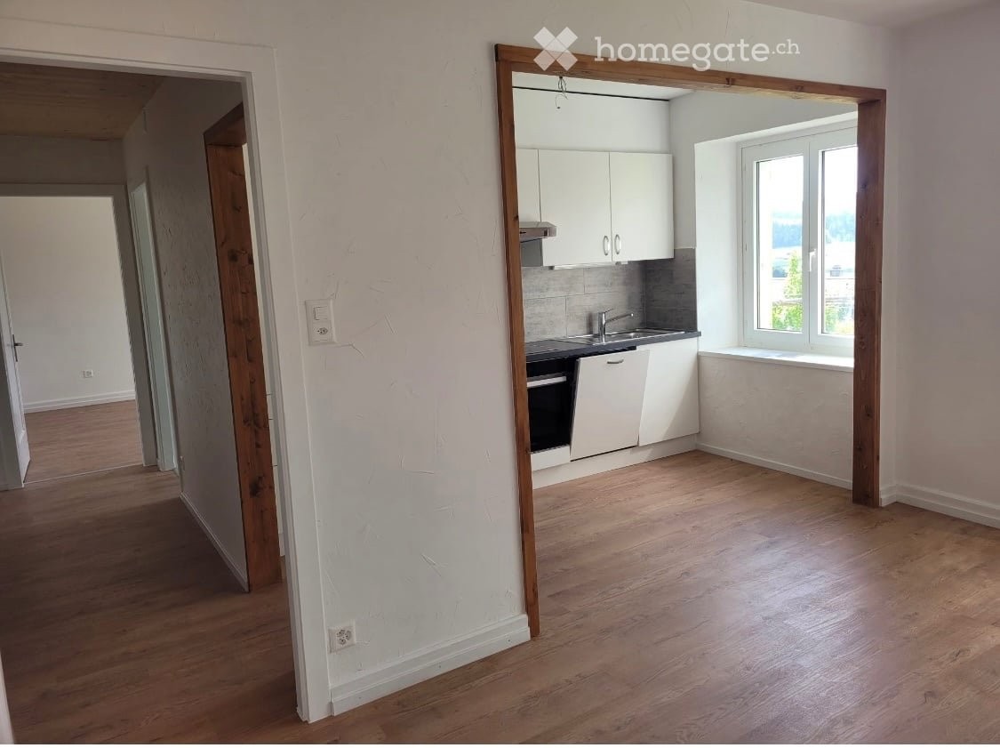 Appartement avec vue imprenable sur la vallée. Très lumineux. Cuisine moderne ouverte sur le salon. Grande salle-de-bain. À 20min de la Choux-de-Fonds, du Val-de-Travers, de Neuchâtel et du lac. Point de départ pour randonnées. Place de stationnement dans la rue. Buanderie et laverie dans l'immeuble. Reprise de bail aux mêmes conditions
