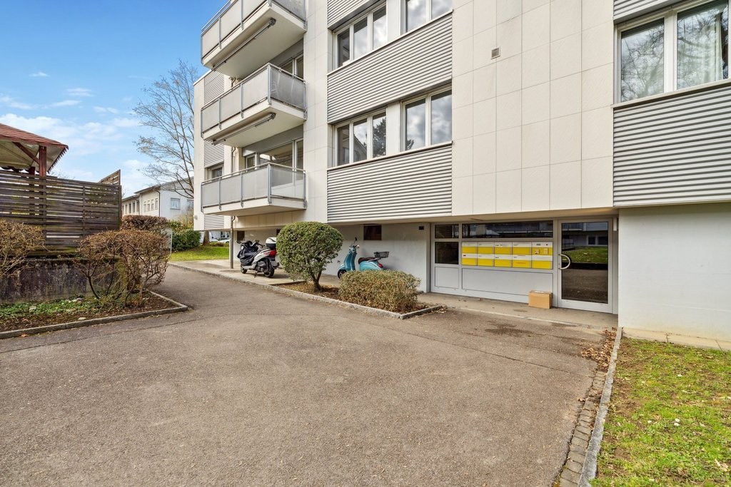 Vielfältige Einkaufsmöglichkeiten bietet das Einkaufszentrum Paradies in unmittelbarer Nähe. Der öffentliche Verkehr (Bus und Tram) sind in wenigen Gehminuten erreichbar.