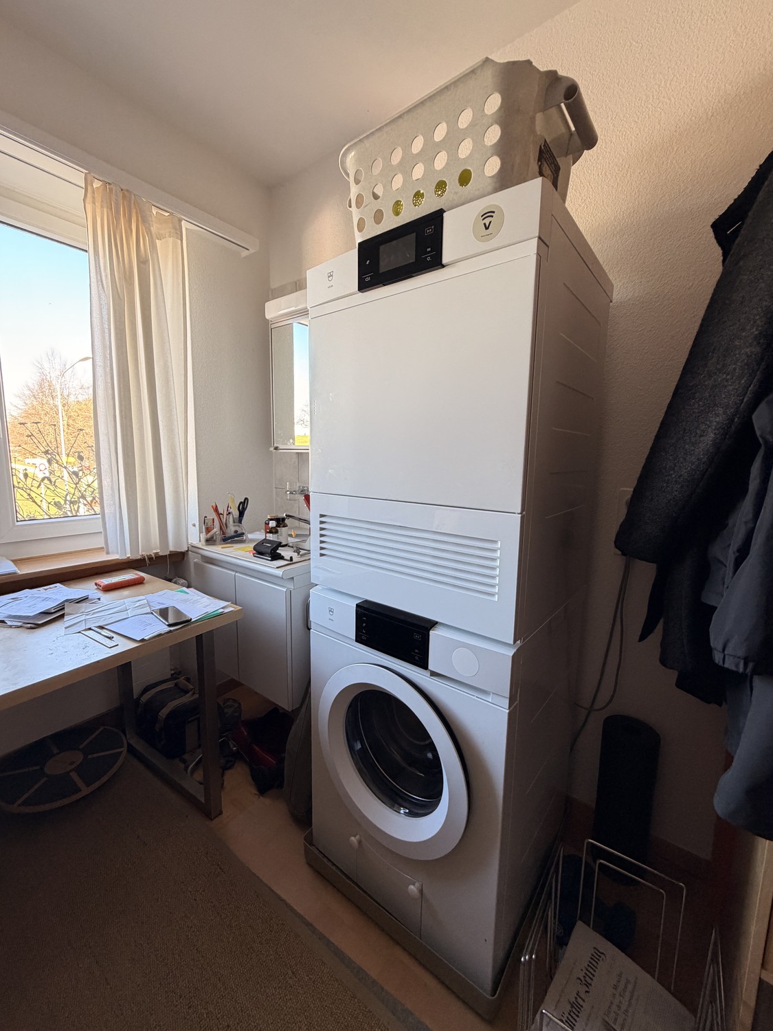 Das sechste Zimmer ist als praktisches Wirtschaftszimmer mit eigener Waschmaschine und Tumbler ausgestattet und schafft zusätzlichen Komfort im Alltag.