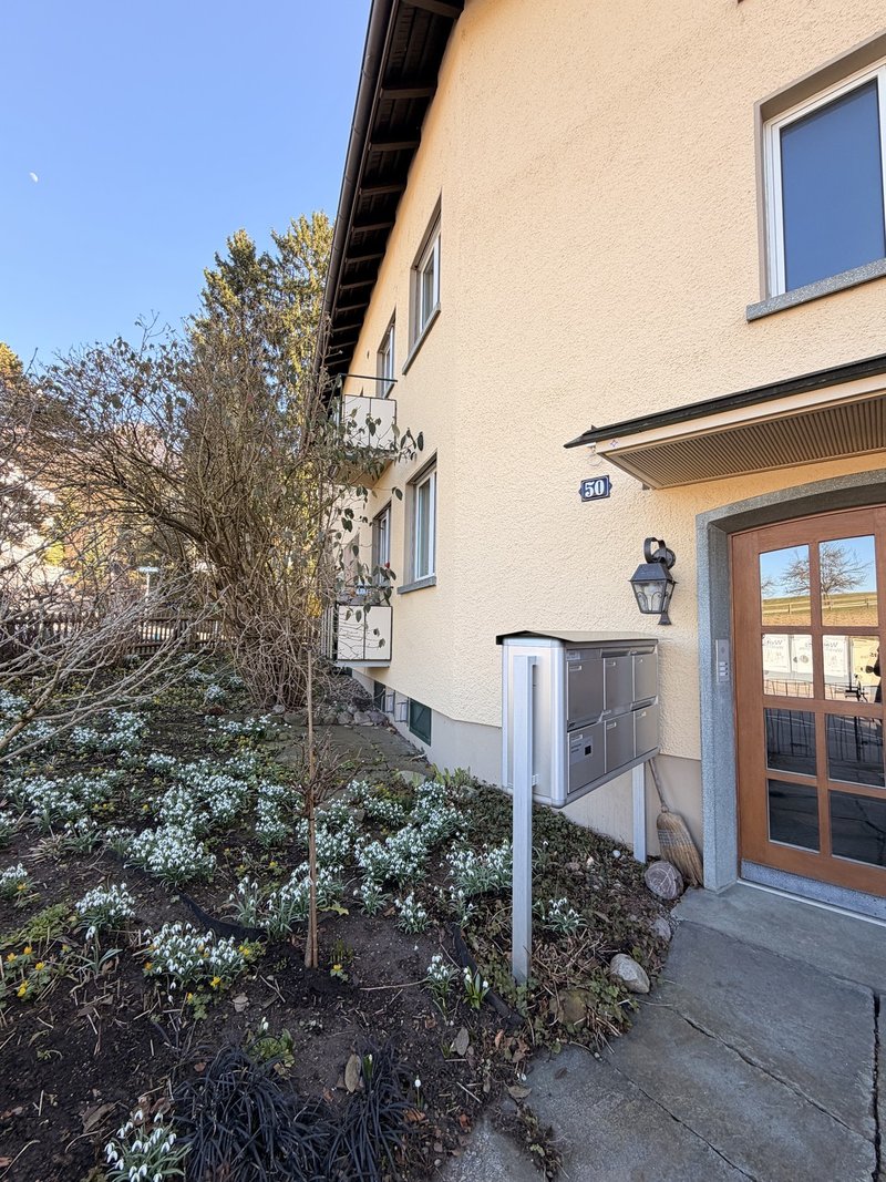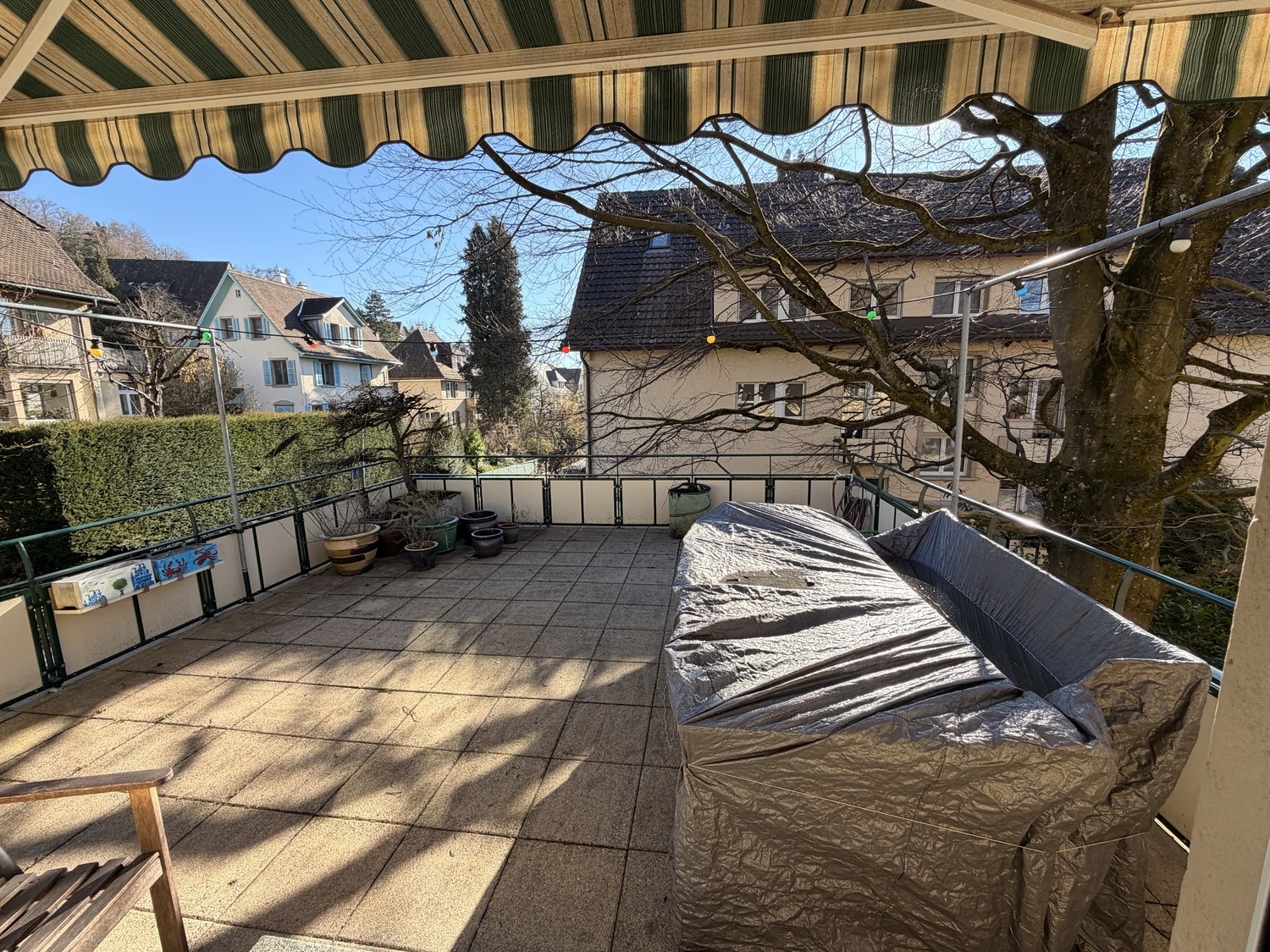 Die grosszügige Terrasse erweitert den Wohnraum ins Freie und bietet viel Platz für entspannte Stunden oder gesellige Abende.