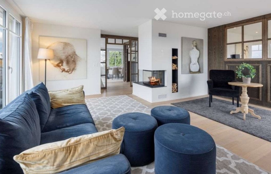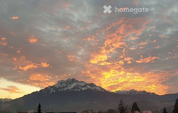 Die Wohnung präsentiert sich im Eigentumsstandard mit ausgesuchten Materialien und modernem Design, Eichenparkett in allen Räumen und grosse elegante Fliesen in den Nasszellen, im Haushaltraum inkl. Wäscheturm sowie auf der Terrasse. Das Attika-Geschoss bietet hohen Wohnkomfort mit Privatsphäre, direktem Liftzugang, Cheminée, langen Fensterfronten, 3 Nasszellen, 2 Schlafzimmer, Esszimmer mit offener Küche, Wohnzimmer mit Homeoffice. Im Homeoffice geniessen Sie zudem den direkten Blick auf den Pilatus.