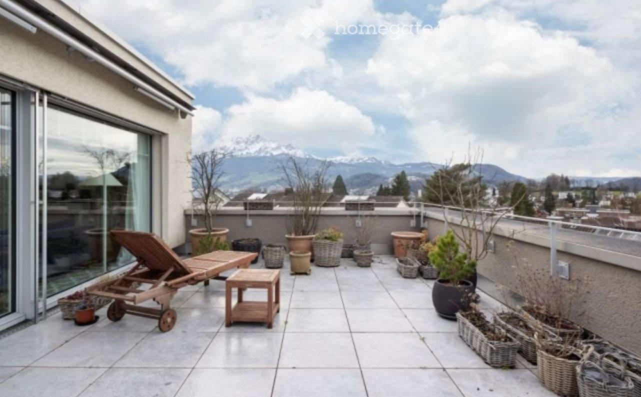 An begehrter Wohnlage in der Stadt Luzern vermieten wir eine 2017 neu erbaute möblierte Attika-Wohnung im 4. Stockwerk (befristet) mit 152 m2 Wohnfläche und 90 m2 Dachterrasse mit eindrucksvollem Weitblick über die Stadt, grossartiger Aussicht auf den Pilatus, das Château Gütsch, und bis weit ins Mittelland hinein. Im Sommer erlebt man herrliche Sonnenuntergänge am Horizont, welche das Wohn- und Esszimmer in wunderbares Licht hüllen. Der Lift führt direkt in die Wohnung.