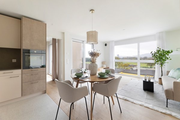 Bodentiefe Verglasungen lassen viel Sonnenlicht durch die gesamte Wohnoase fliessen und geben Ihnen so ein Gefühl von Wärme und Geborgenheit. Die beeindruckende Aussicht von den Balkonen unterstreichen dieses Wohlbefinden Tag für Tag.