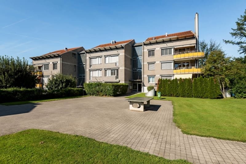 Geniessen Sie die schöne Bergsicht in der familienfreundlichen Wohnsiedlung. Die vielen Grünflächen bieten Raum zum Spielen und Verweilen.