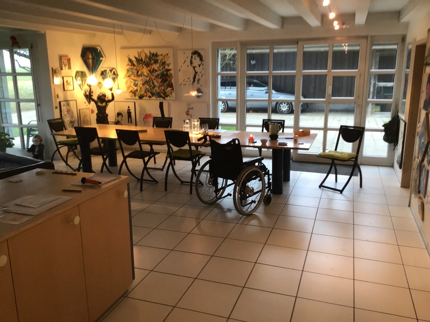 Im MIetpreis sind alle Nebenkosten enthalten - auch die Reinigung des allgemeinen Bereiches durch unsere Haushälterin Silvia. Ein Aussenparkplatz ist vorhandenund in unserem Grossraumbüro im 1. Stock auf 250m2 kannst Du Deinen eigenen Arbeitsplatz fürs Homeoffice einrichten. Eine Atelier-Malecke wie auch Musikecke und Malecke sind auch vorhanden und wenn Du Deine Freunde empfangen willst, können diese im Gästezimmer übernachten.
