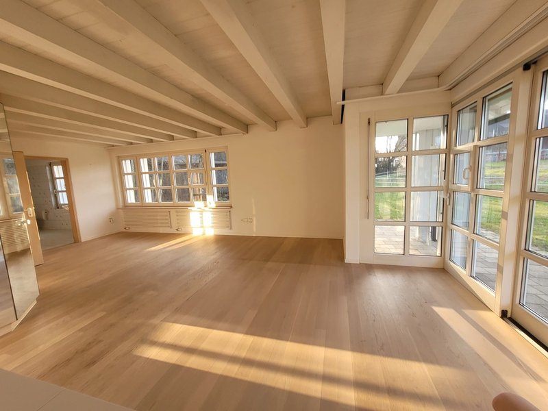 Im EG befindet sich auf 250m2 der Wohnbereich, ausgestattet mit allen Annehmlichkeiten. Modernste Küche, grosszügiges Wohn-Esszimmermit grossem Esstisch und Cheminee, Waschküche mit Waschmaschine/Tumbler sowie WELAN. Dein Zimmer wird vom Morgen bis Abend von der Sonne bestrahlt und Du hast einen direkten Zugang zum GArten mit einer Schiebetüre.