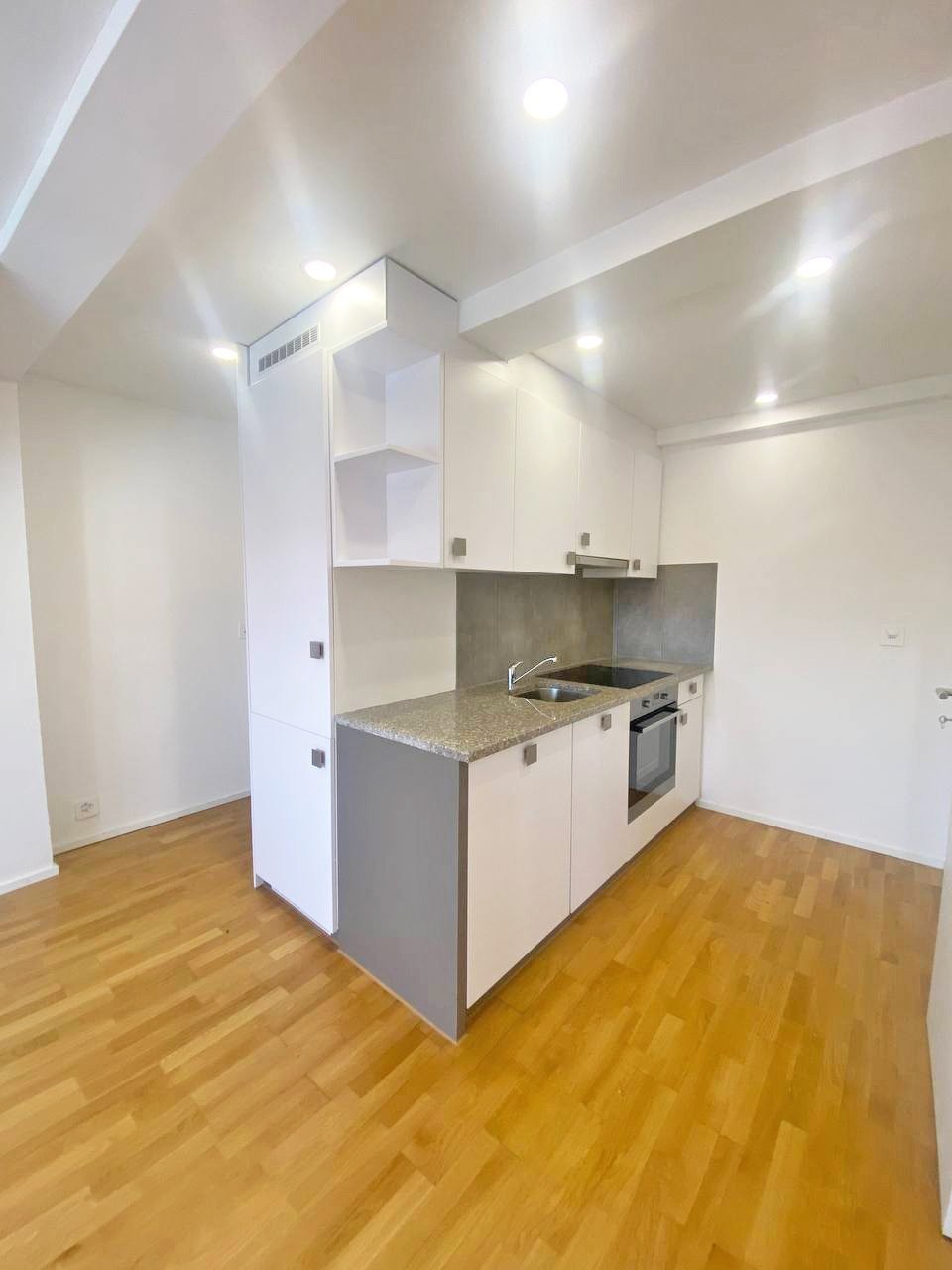 Die Wohnung verfügt über eine moderne Küche mit Glaskeramikherd und Geschirrspüler, die das Kochen zum Vergnügen macht. Viele Fenster durchfluten die Wohnung mit natürlichem Licht und schaffen eine freundliche Atmosphäre. Die Wohnung befindet sich im 5. OG und bietet eine schöne Aussicht über die Dächer der Stadt. Die beiden Zimmer können gemütlich eingerichtet werden. Ein eigenes Kellerabteil bietet zusätzlichen Stauraum.