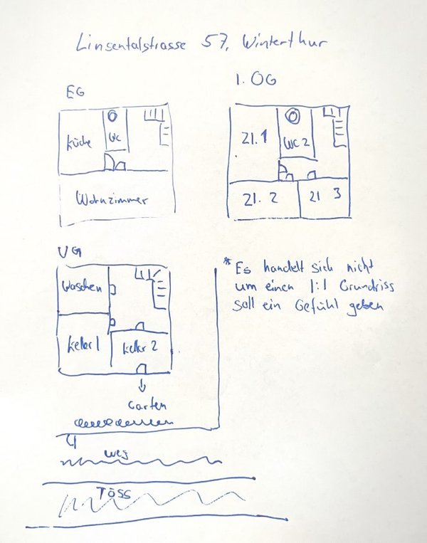 Es handelt sich um ein Altbauhaus mit viel Charme. Da die Eigentümerschaft aktuell nicht umfassend investieren kann, wird das Haus zu einem fairen Preis angeboten. Es werden lediglich akute Schäden behoben, etwas handwerkliches Geschick und Engagement der Mieterschaft ist daher von Vorteil.