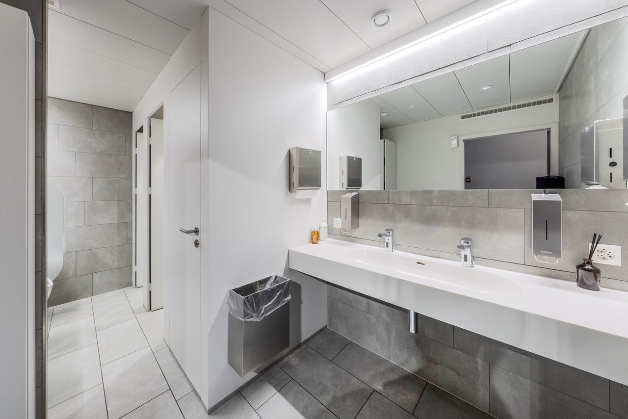 Hochwertig ausgebaute Toilettenanlagen und Teeküchen auf jeder Etage