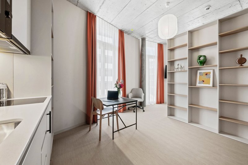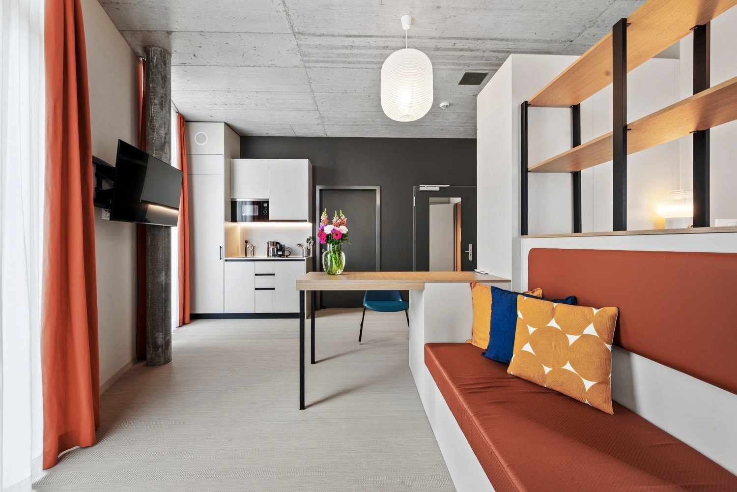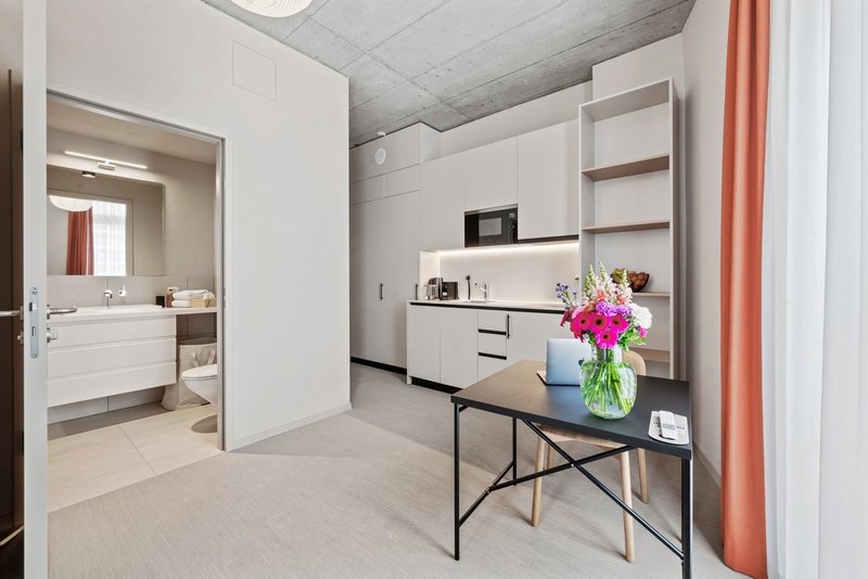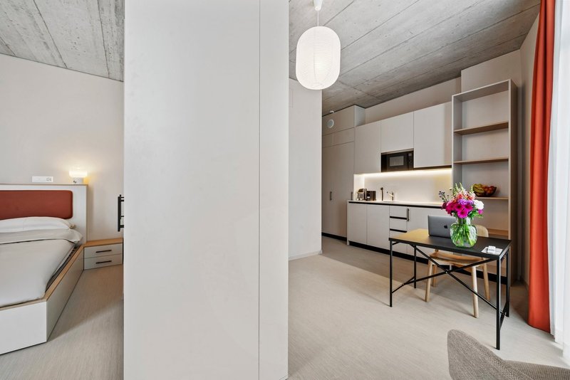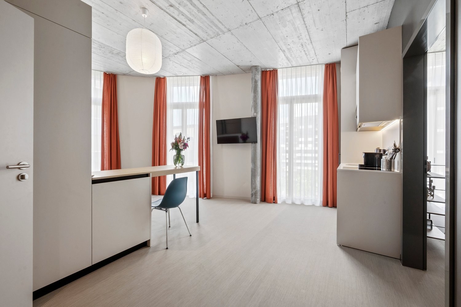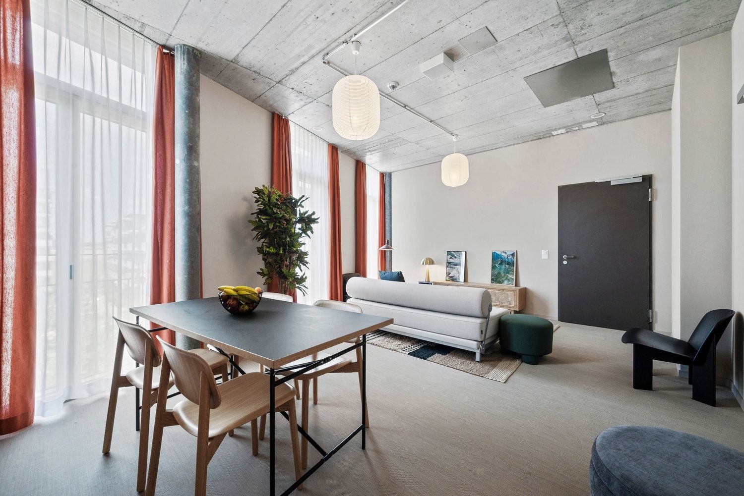 Discover the essence of sustainable and community-oriented living in the Family Suite at Ariv Zug. This spacious apartment combines the comfort of a Suite with the coziness of a Comfy room, offering a separate bedroom and a generous living room with a sofa for relaxing or working. The fully equipped kitchenette includes a microwave, fridge, stove, kettle, and Nespresso machine, making it easy to feel at home from day one.