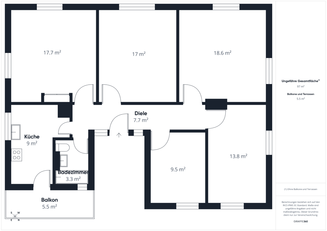 Die Wohnung verfügt über eine renovierte Küche mit Geschirrspüler und ein Badezimmer mit Badewanne. Die Räume sind sehr hell, hoch und durchgehend mit einem Fischgratparkett ausgestattet. Ebenfalls ist ein Balkon vorhanden, welcher von der Küche aus betreten werden kann.