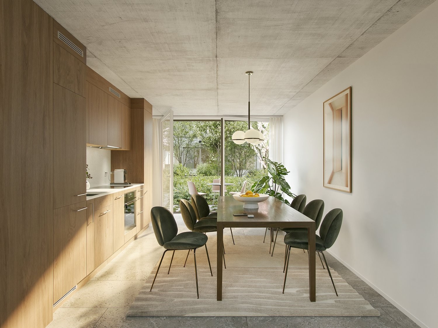 Urbane Symbiose: Die vertikale Begrünung der Gebäude und die direkte Lage am Überlandpark schaffen eine einzigartige Verbindung aus modernem Stadtleben und erholsamen Grünflächen.