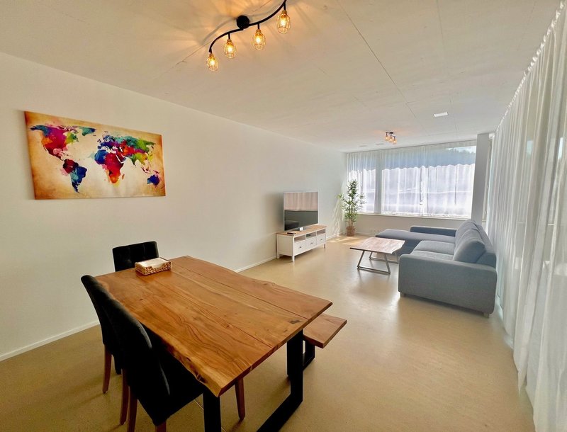 A big and bright room is available in our comfortable apartment just at the border of Kreis 12 and Oerlikon. The room is fully furnished, for example with an electric desk. All side costs like very fast Swisscom internet are also included. You have ideal connections with the public transportation and are quickly everywhere around, 7min to Oerlikon / 5min Uni Irchel / 17min Zürich HB mainstation / 13min ETH and University Zürich / 17min to ETH Hönggerberg. Also shopping opportunities and restaurants are just around the corner. The apartment is quiet, very modern, spacious and has everything you need like a wintergarden, 2 bathrooms, a big living room with open kitchen and an own washingmachine/dryer.