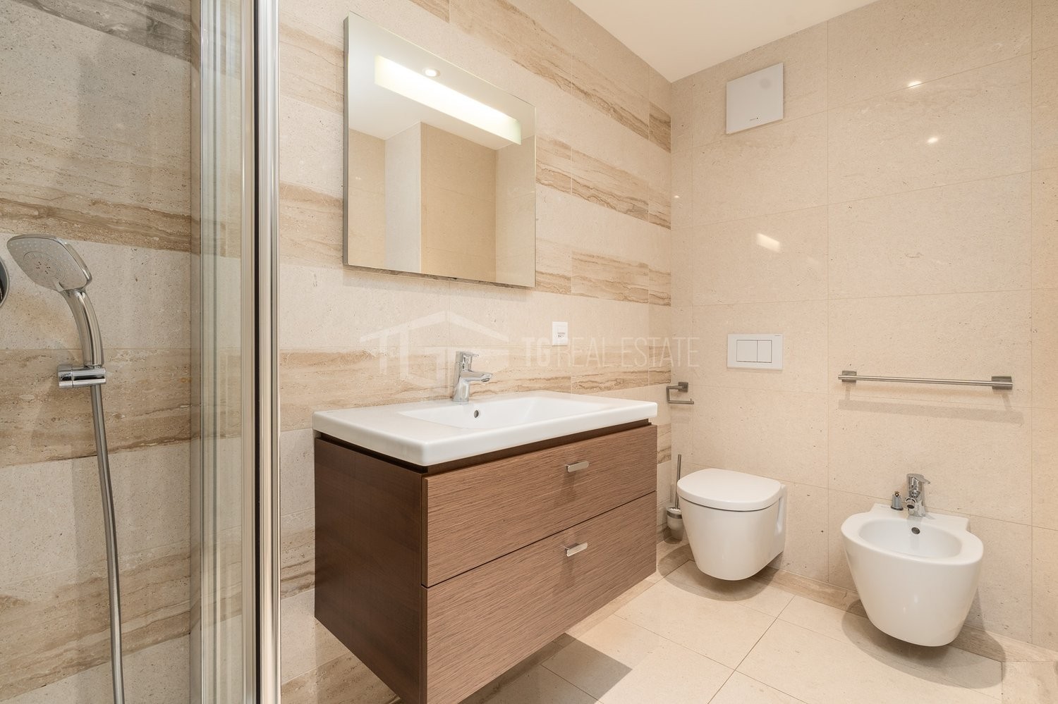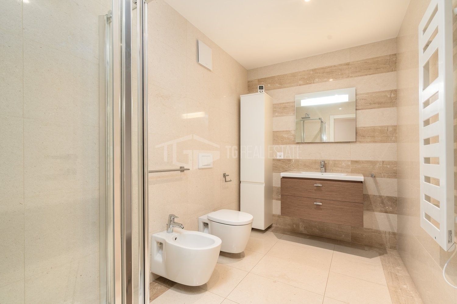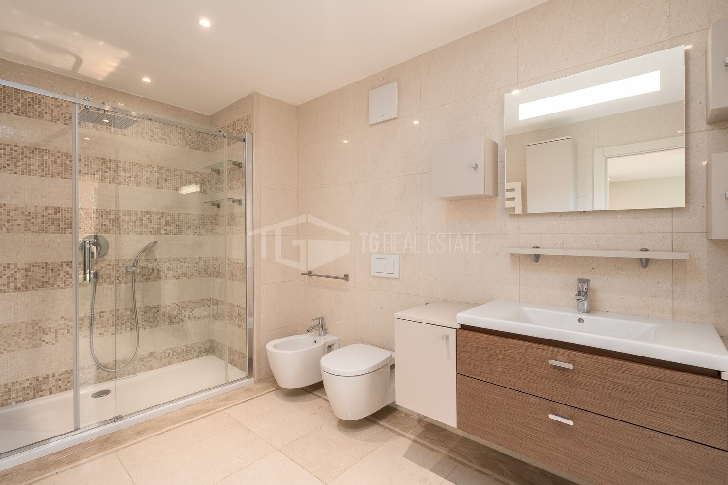 Seconda e terza camera con bagni en suite ed armadi a muro, quarta camere con armadi a muro, uno studio/grande cabina armadio, quarto bagno con doccia, comoda zona lavanderia in appartamento.