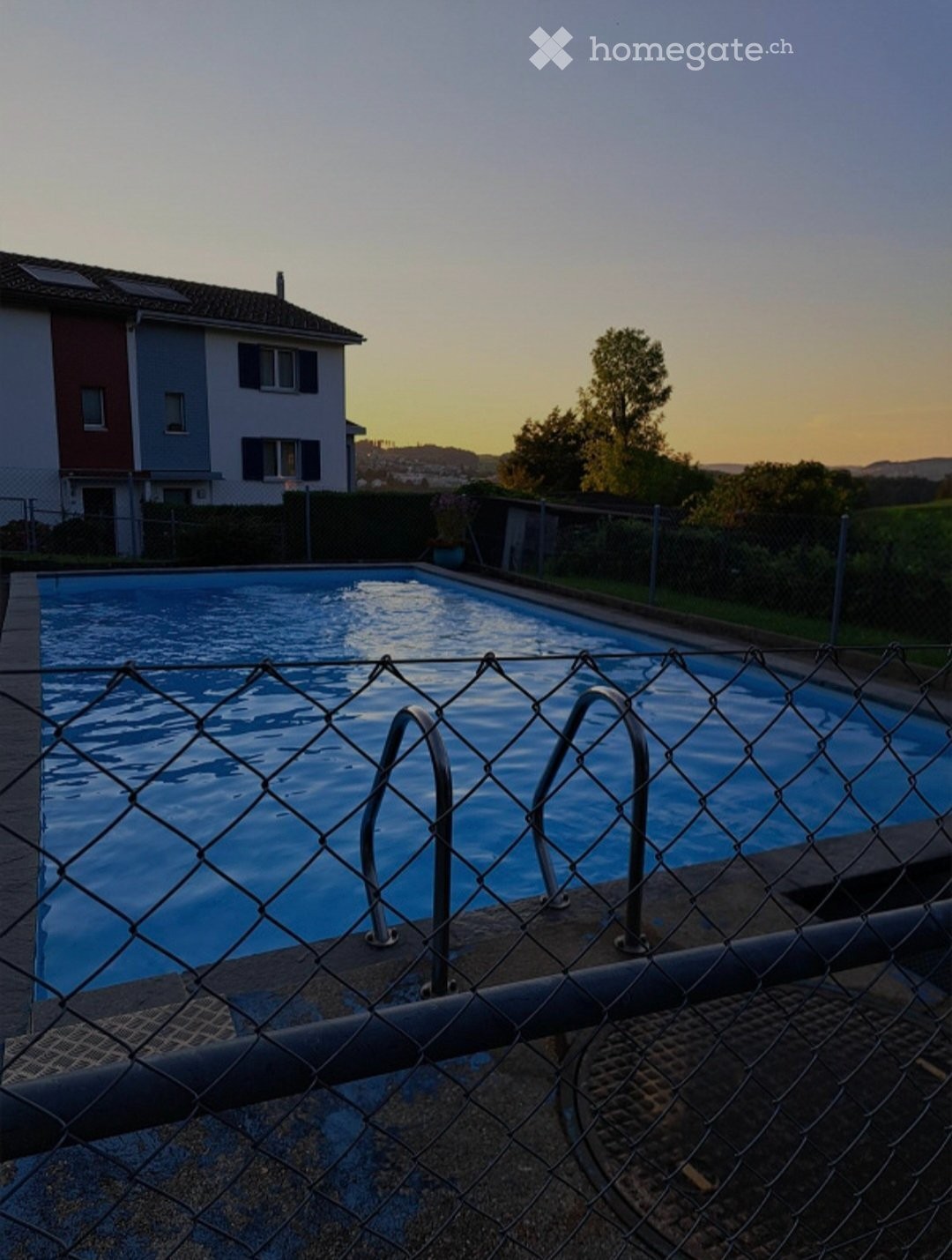 Der Gemeinschaftspool liegt direkt im Quartier und ist zu Fuss in 1 Min. erreichbar.