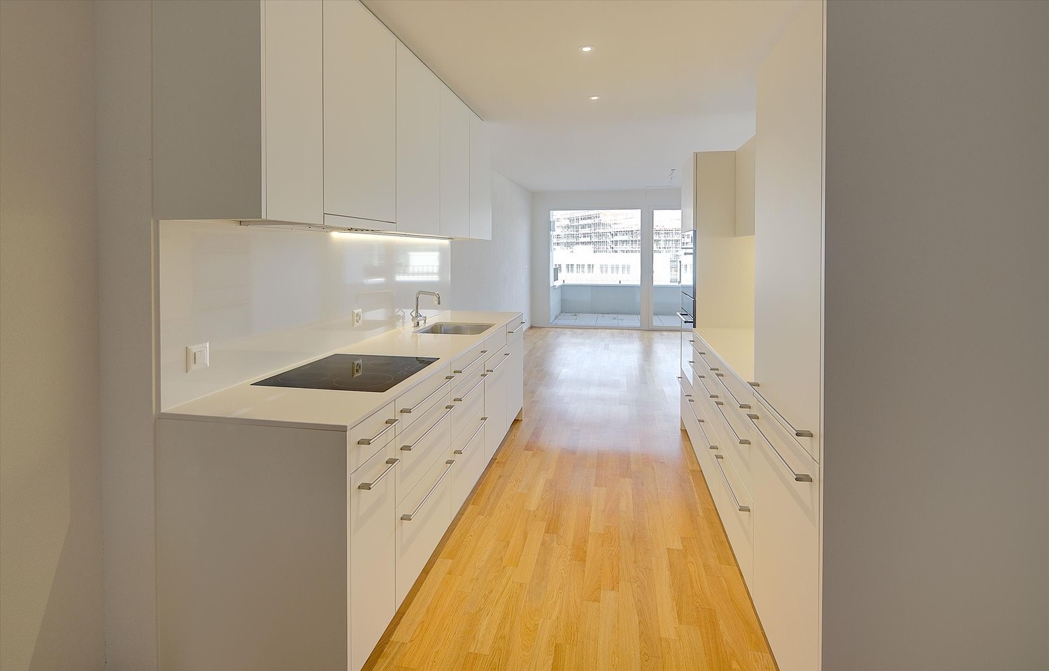 - Küche mit Induktion-Kochfeld, Geschirrspüler, Backofen und Steamer