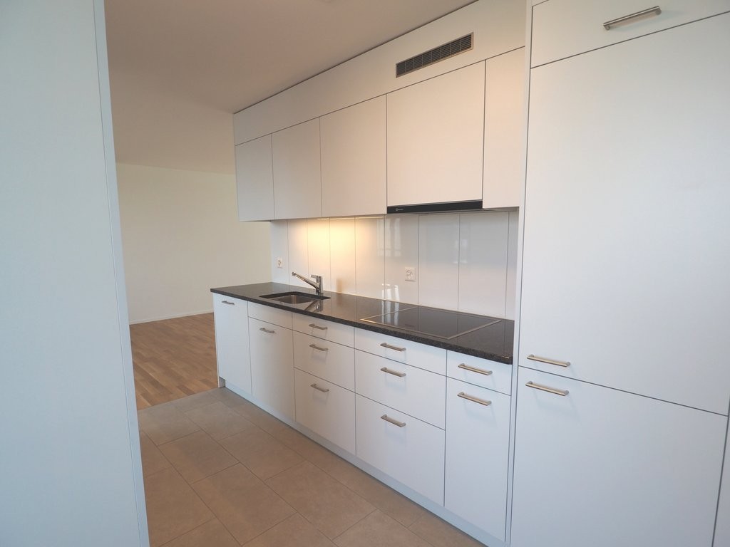 - Moderne Küche mit Backofen, Geschirrspüler, Glaskeramikherd, Kühlschrank und separatem Gefrierschrank
