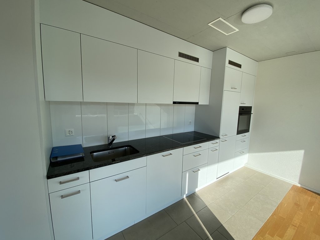 - topmoderne Küche mit Geschirrspüler, Glaskeramikherd, grossem Kühlschrank und separatem Gefrierfach